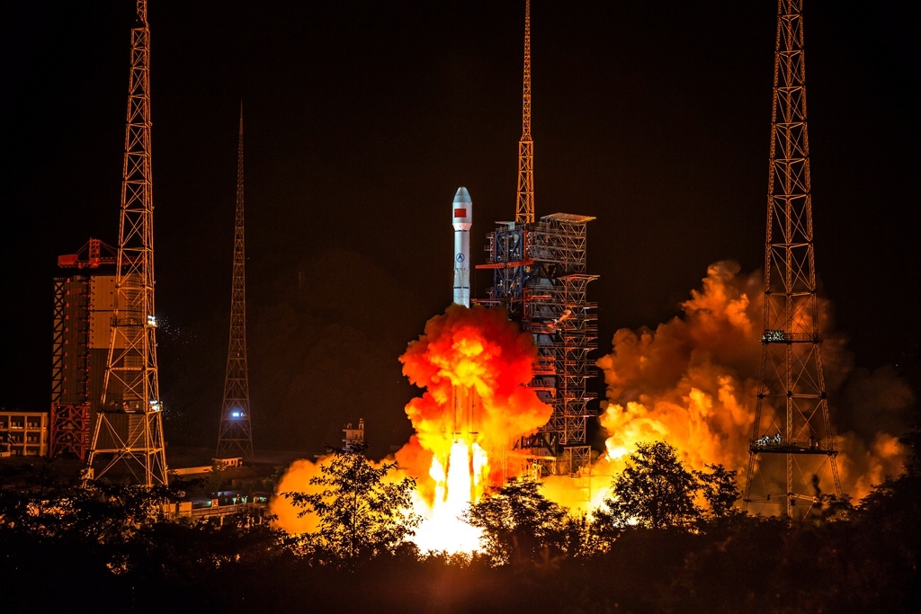 西昌卫星发射中心现场,北斗卫星正发射升空。邹森 摄