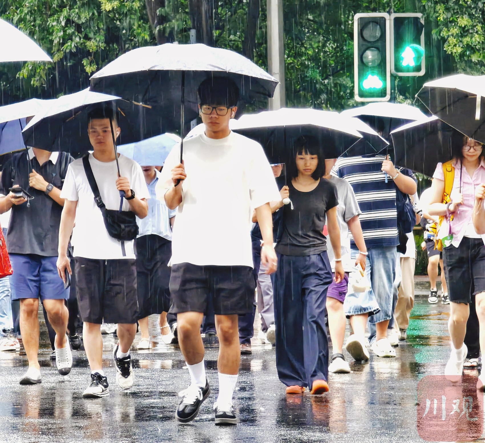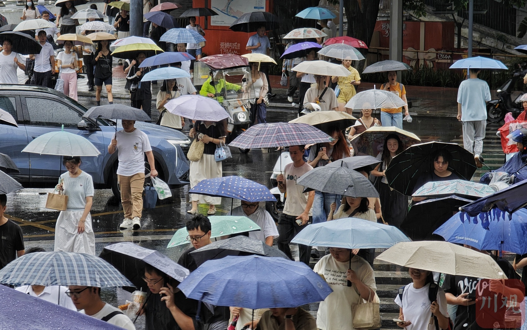雨伞成为一道风景。