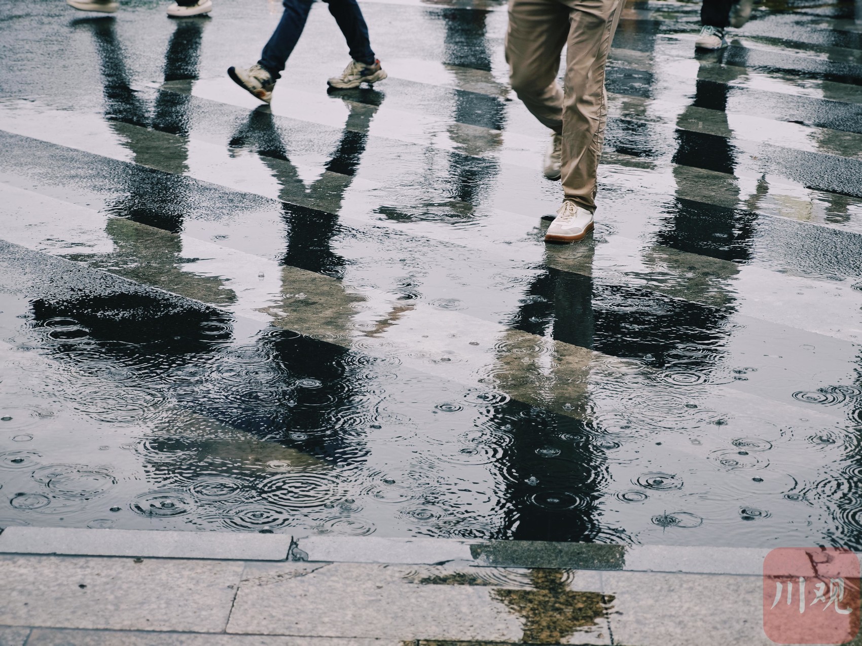 路面倒影的行人。