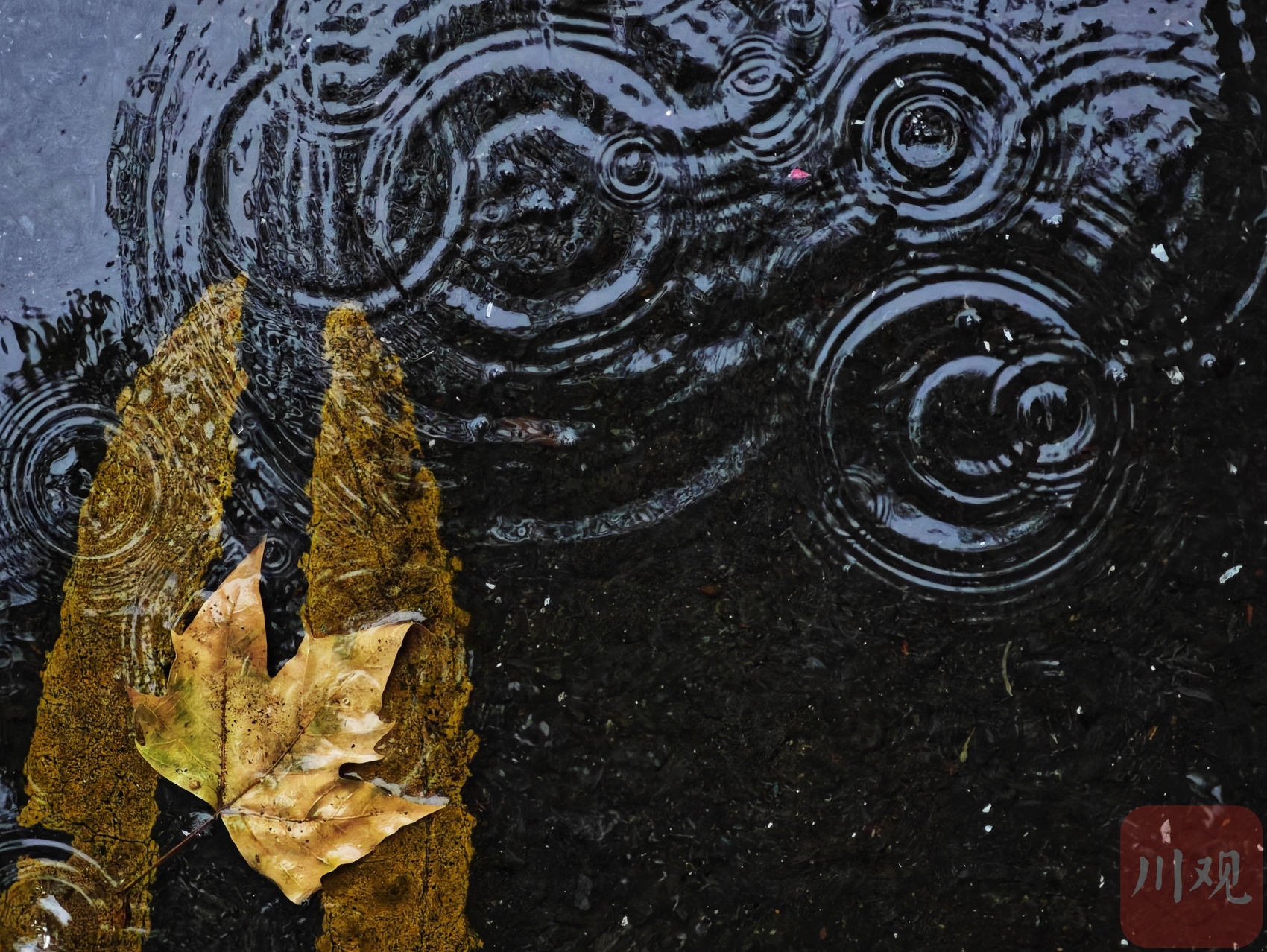 街道上的雨滴在路面渐起的圆圈。