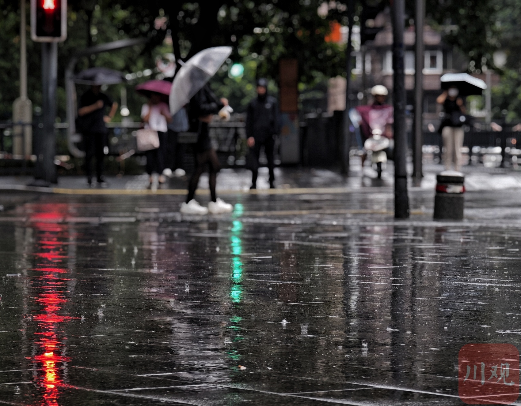 雨中的行人。