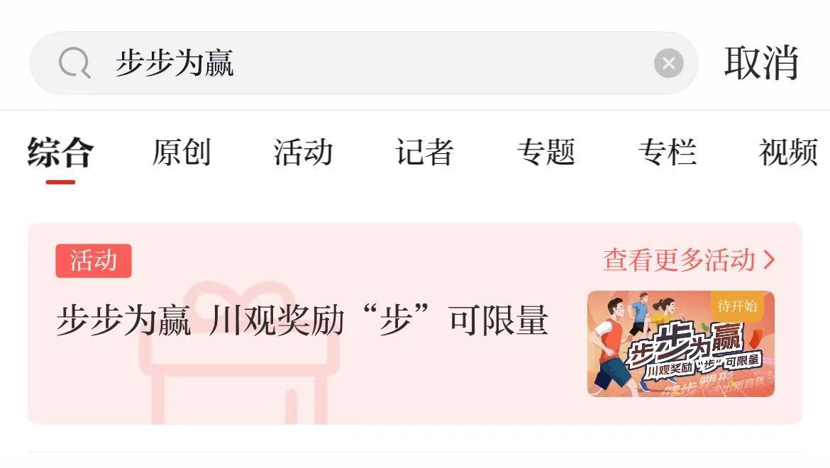 方式二:在川观新闻首页,点击右下角“活动”,点击“活动中心”,找到“步步为赢”活动图片,点击即可参与;