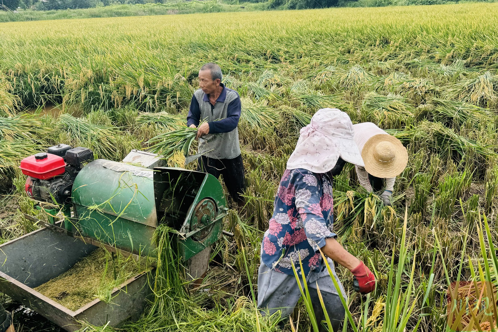 村民在稻田里收割水稻。杜雨芸摄