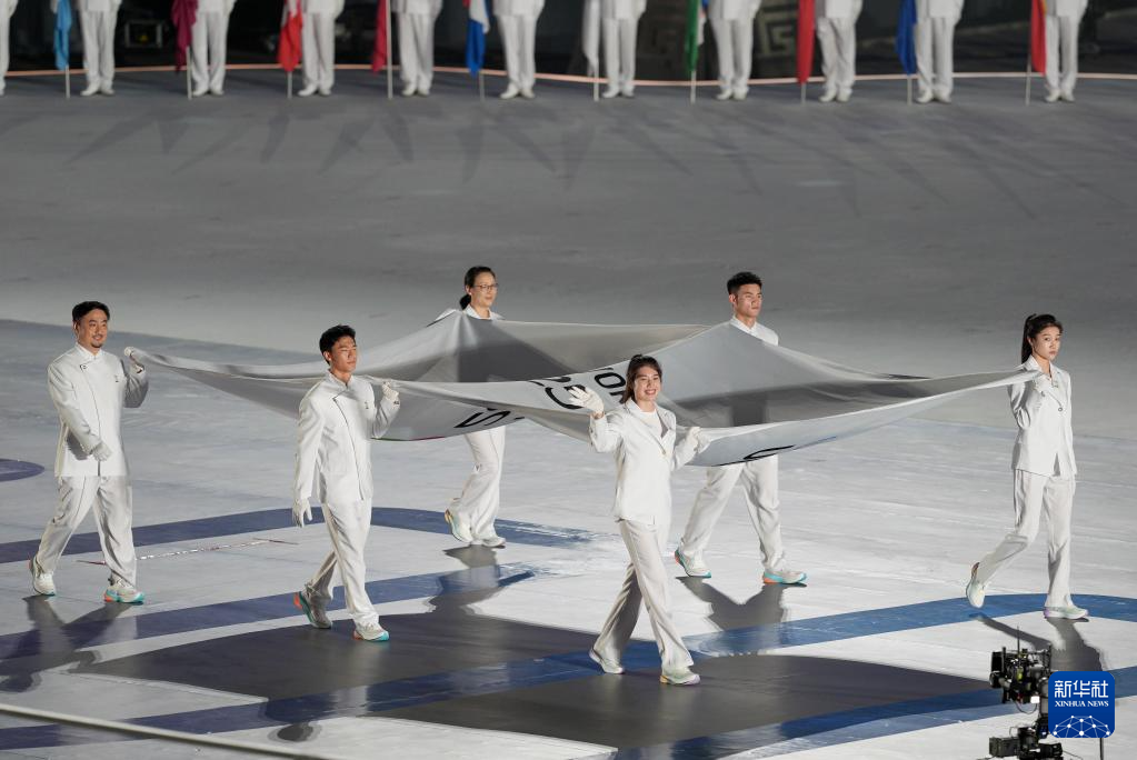 8月7日,成都世运会组委会会旗在开幕式上入场。新华社记者 江宏景 摄