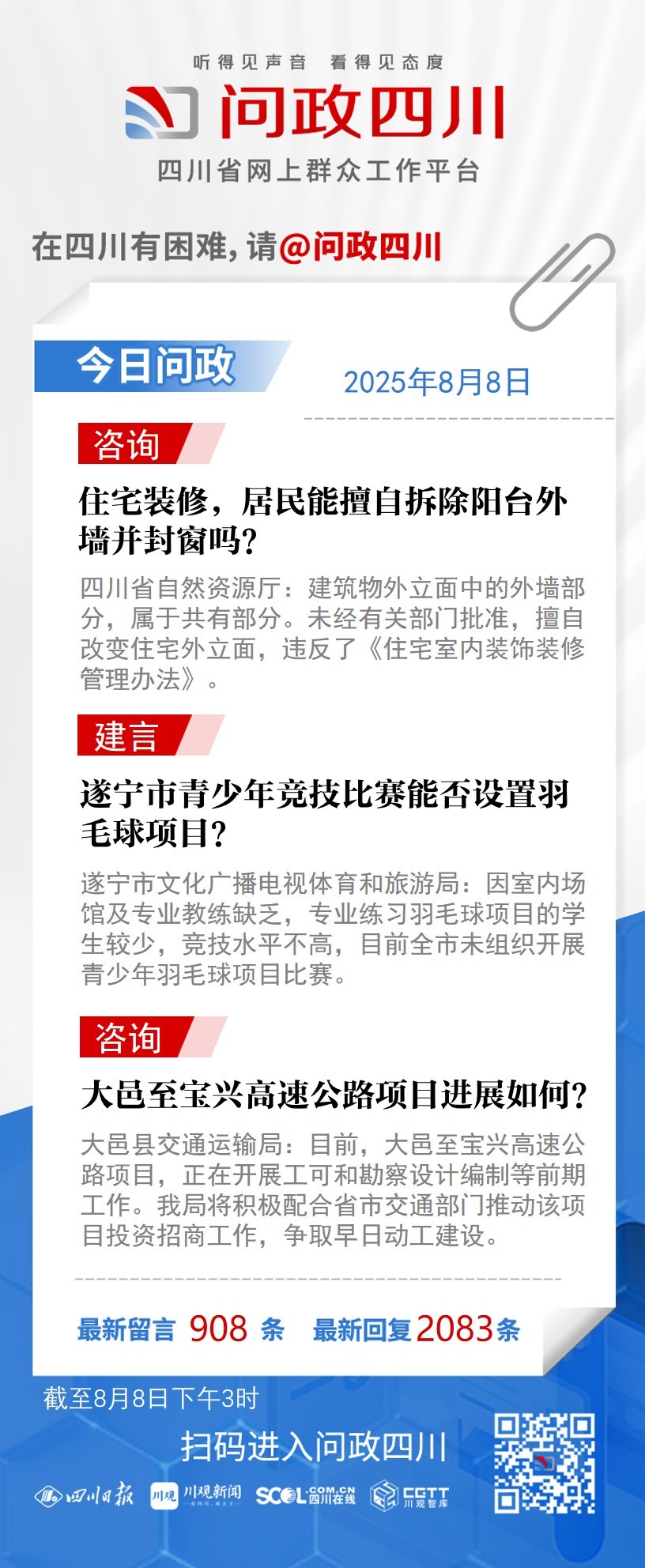 问政四川网友提问:住房装修,业主能否自行拆除阳台,改变外立面进行封窗?