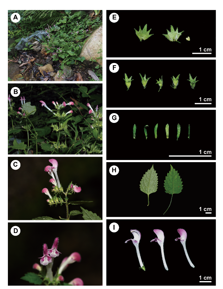 据悉,瓦屋山冠唇花主要可以从形态特征上将其与冠唇花属其他种类区分开来。例如,瓦屋山冠唇花的叶缘锯齿三角状卵圆形或近圆形,先端具尖凸;萼齿呈三角披针形,线状披针形至钻形,先端通常具钩;花冠白色,上唇密布斑点呈淡紫红色;下唇侧裂片亦具淡紫红色斑点;花丝在花冠筒以上的部分位置和基部具髯毛,而中部几乎无髯毛。