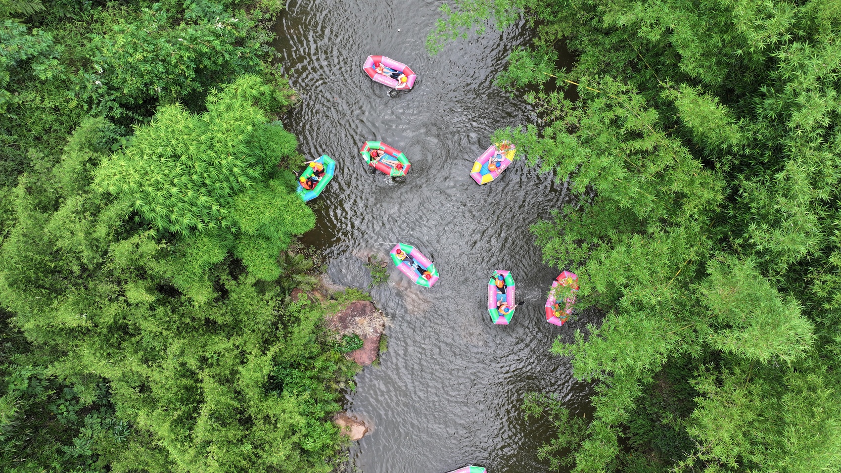 夏日,游客在泸州市纳溪区清溪河漂流戏水。高银松 摄