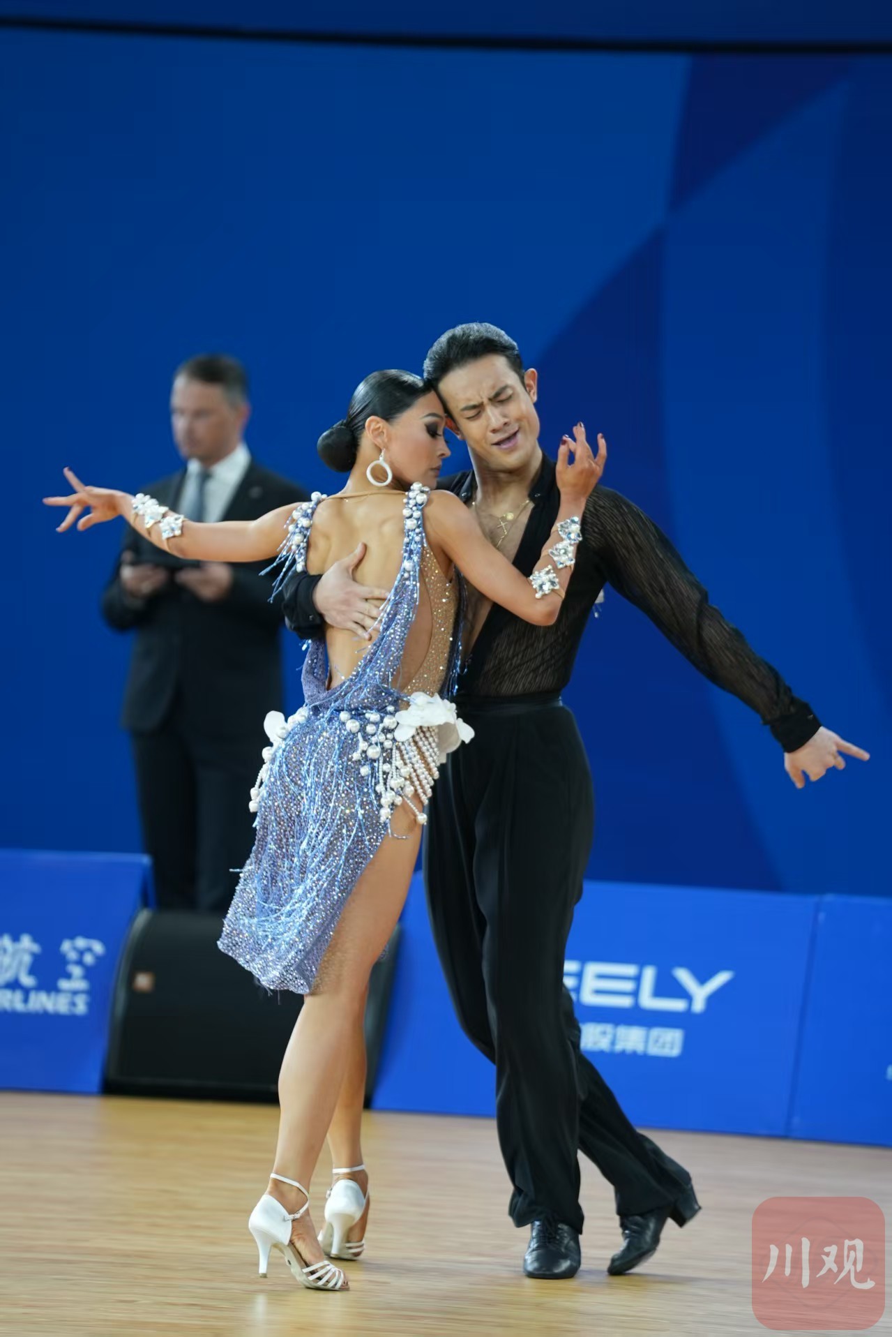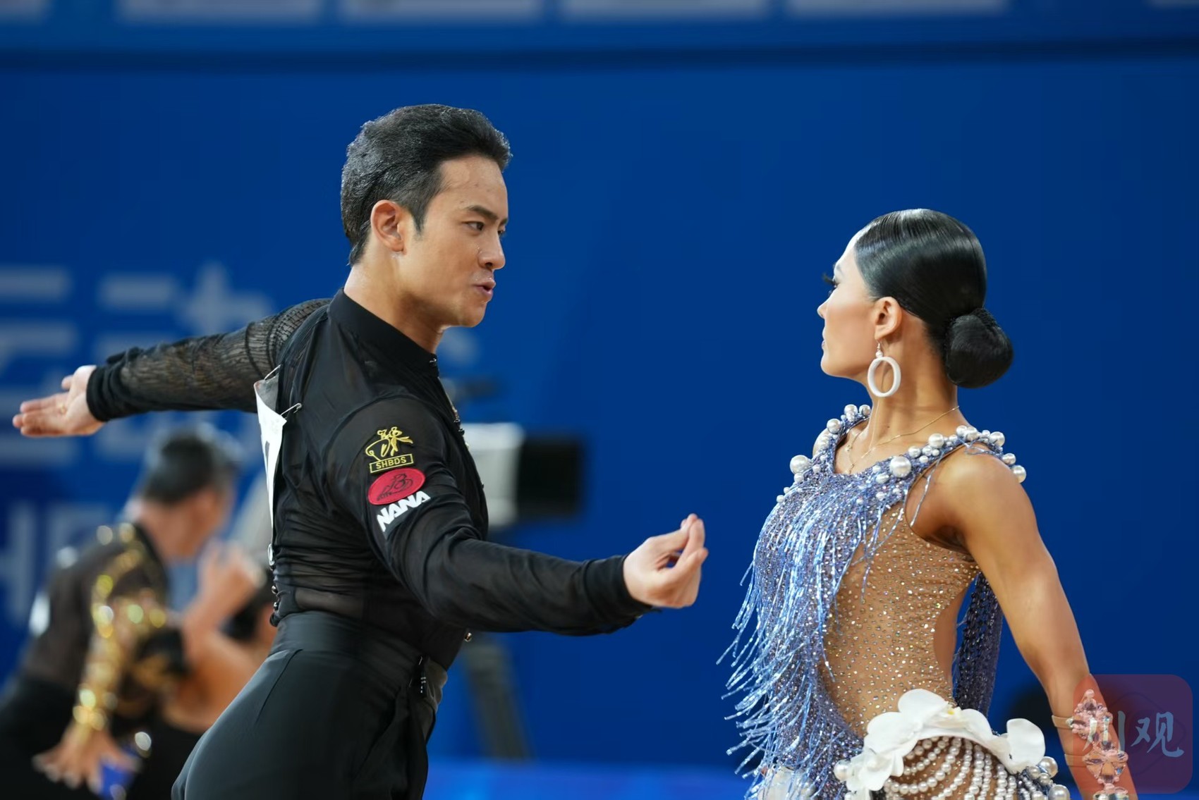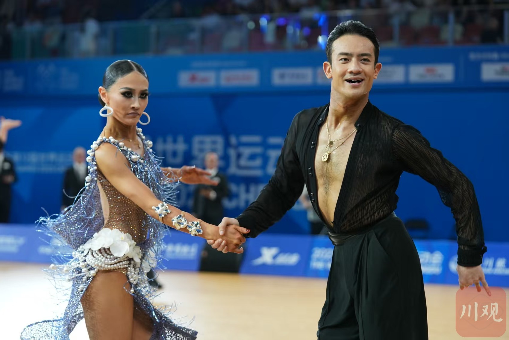 成都世运会体育舞蹈比赛分拉丁舞、标准舞两个比赛项目,分别在8月8日、9日进行。8月8日率先进行的是拉丁舞的比赛,共有来自全世界24对世界顶尖选手参加。这些参赛选手均是世界体育舞蹈联合会(WDSF)成都世运会选拔赛的优胜者,或WDSF排名靠前的选手。中国队此番派出了阎棒棒/杜玉君、邵会男/于秋璠、于政民/霍梓桐3对组合。其中,阎棒棒/杜玉君是中国队最具实力的选手。他们不仅排名世界第二,还曾连续来蓉参加世界体育舞蹈大赛,并于2023年力夺拉丁舞世界公开赛冠军,2024年夺得亚洲体育舞蹈锦标赛拉丁舞冠军,此番也算故地重游,主场优势明显。