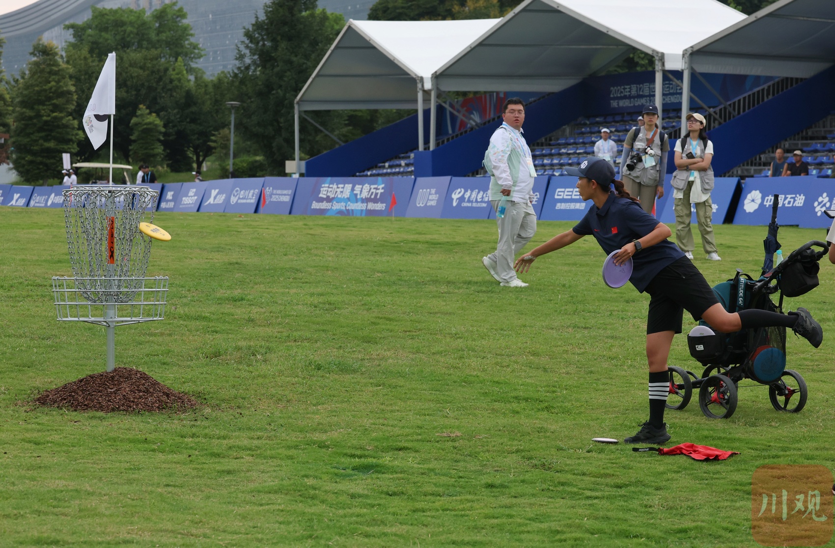 本次世运会首次将掷准飞盘(又称“飞盘高尔夫”)列为正式项目,共16国32名选手参赛。比赛依托桂溪生态公园自然地形设计18洞赛道,选手需绕过树木、水域等障碍,以最少投掷次数入筐,兼具技巧与策略。据了解,这一新兴运动,在全国注册协会超百家,覆盖近200座城市。