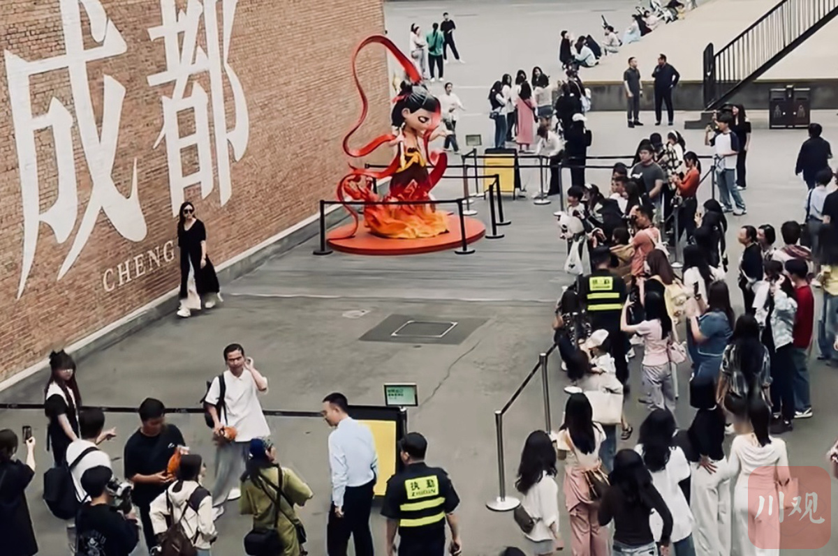 东郊记忆成都墙前,排队等候拍照的游客们。