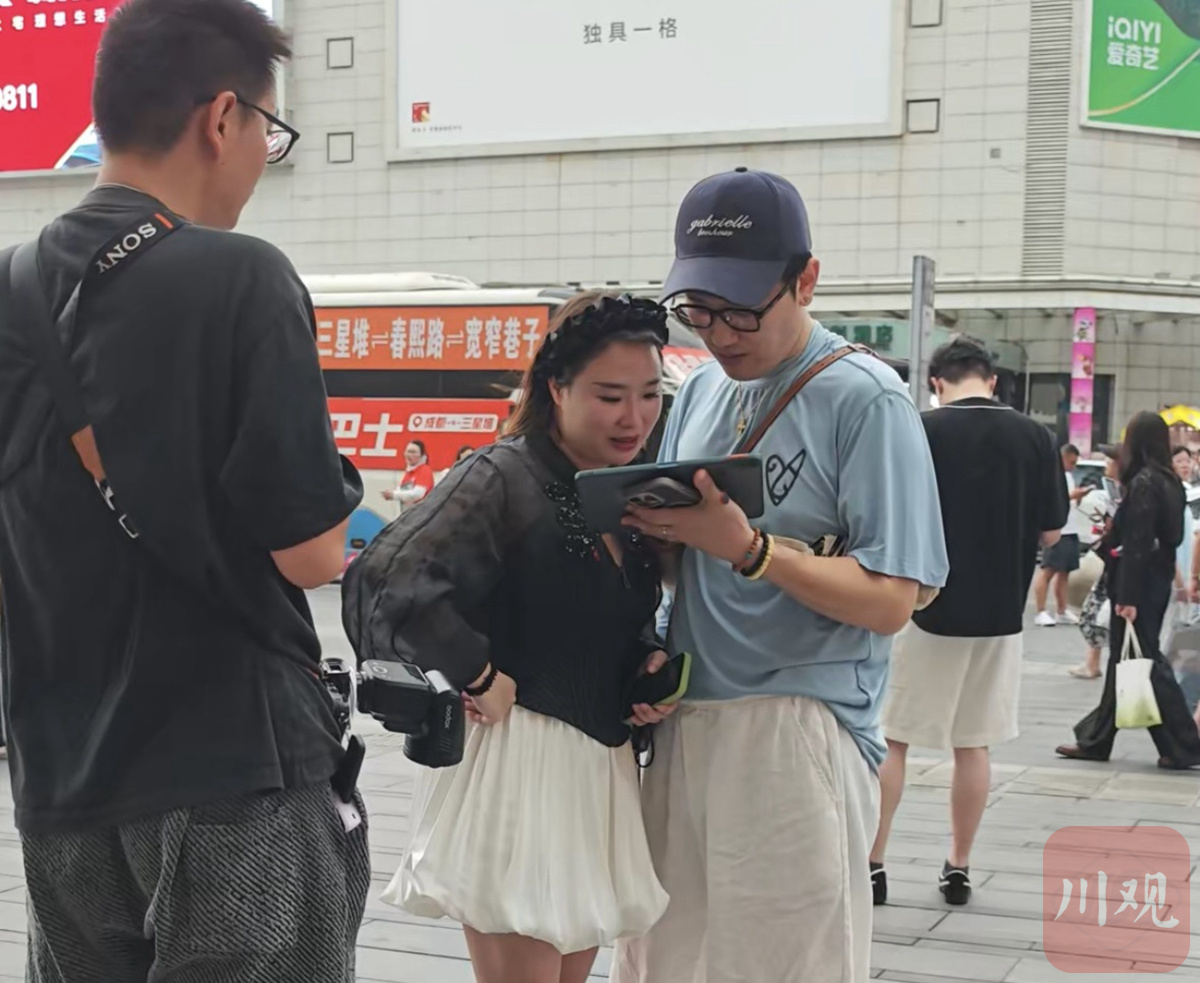 摄影师“晴老师”背着相机,刚结束一组家庭游客的拍摄。“暑期是旅拍旺季,尤其是上午10点到下午4点,IFS熊猫雕塑下的人几乎没空过。”他擦了擦额头的汗介绍说,自己主要承接单点跟拍和短时旅拍,“按小时收费的话,IFS这个点拍一组大概1小时,包含精修照片,价格在200元左右;如果游客想连着春熙路商圈一起拍,时长约2小时,收费300到400元。”“晴老师”坦言,自己从事街头跟拍已有两年,客源多靠现场问询和老客推荐,“一天下来能接2到3组,平均收入500元左右。”