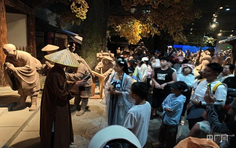 蓬莱阁景区的“丝路情缘”小场景演出走进游客中间(央广网记者 唐磊 摄)