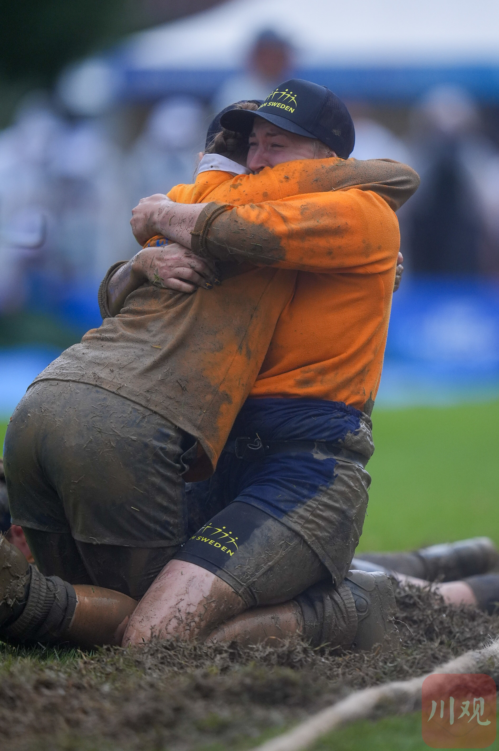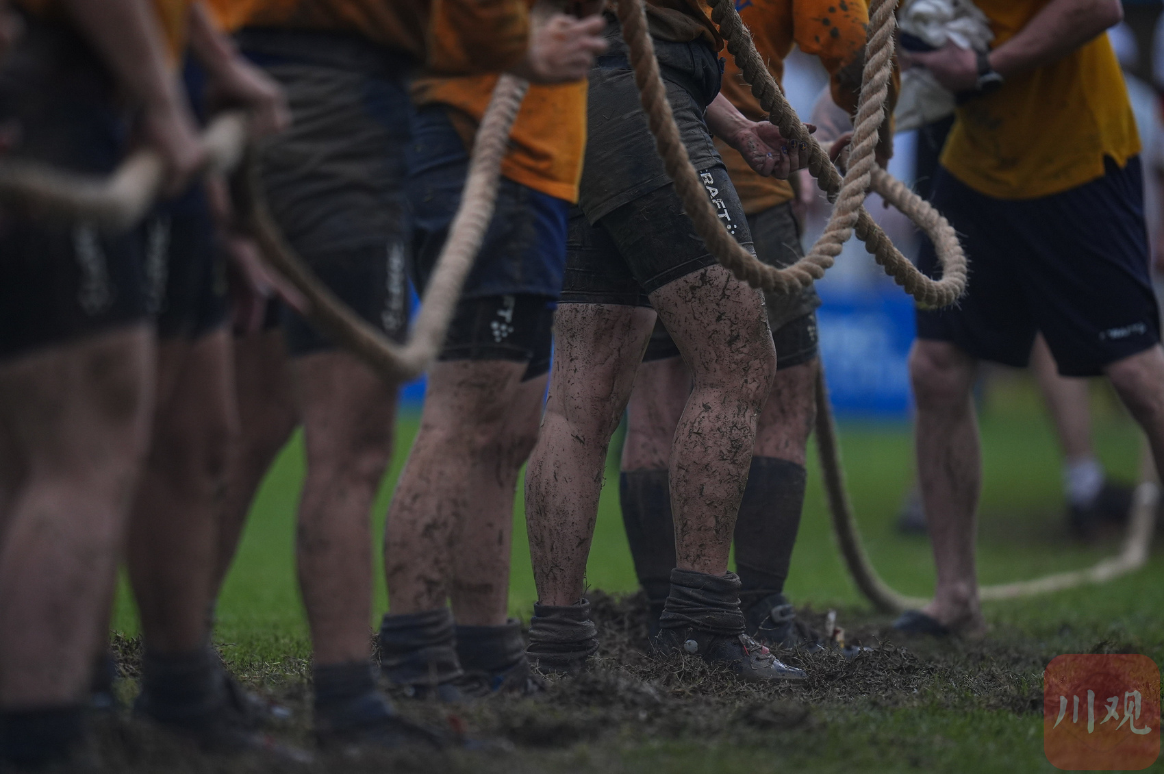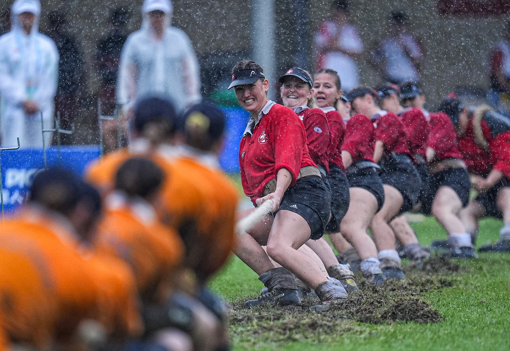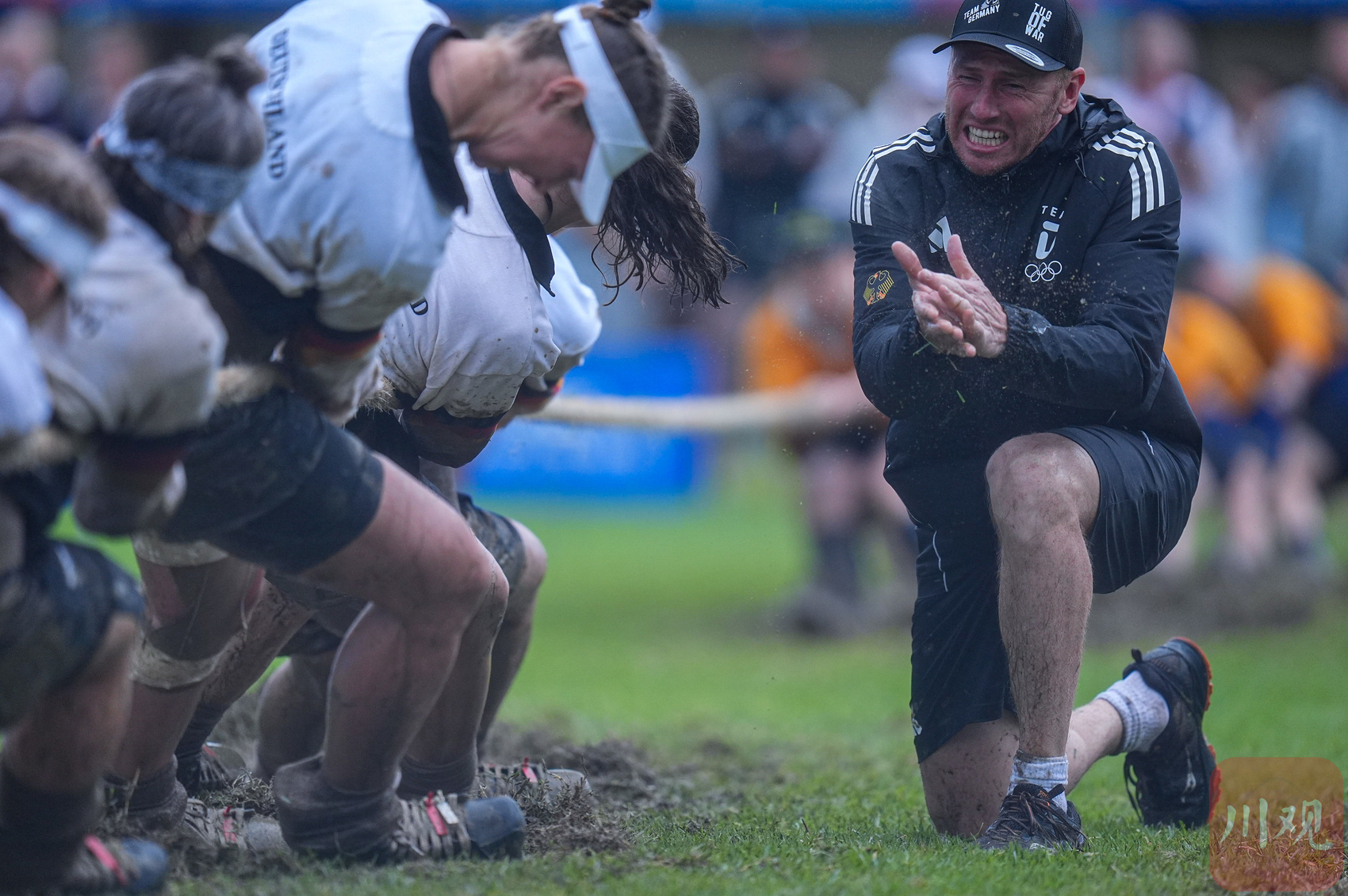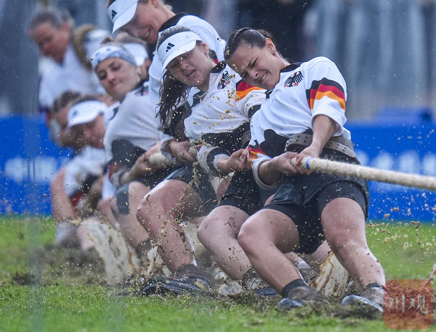 世运会女子拔河比赛,风雨无阻战犹酣。