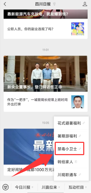打开“四川日报”微信公众号,进入“禁毒小卫士”活动界面↓