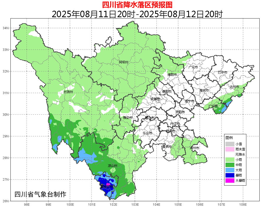 注意!预计今天晚上到明天白天,甘孜州南部和攀西地区有中到大雨,局部暴雨,个别大暴雨。