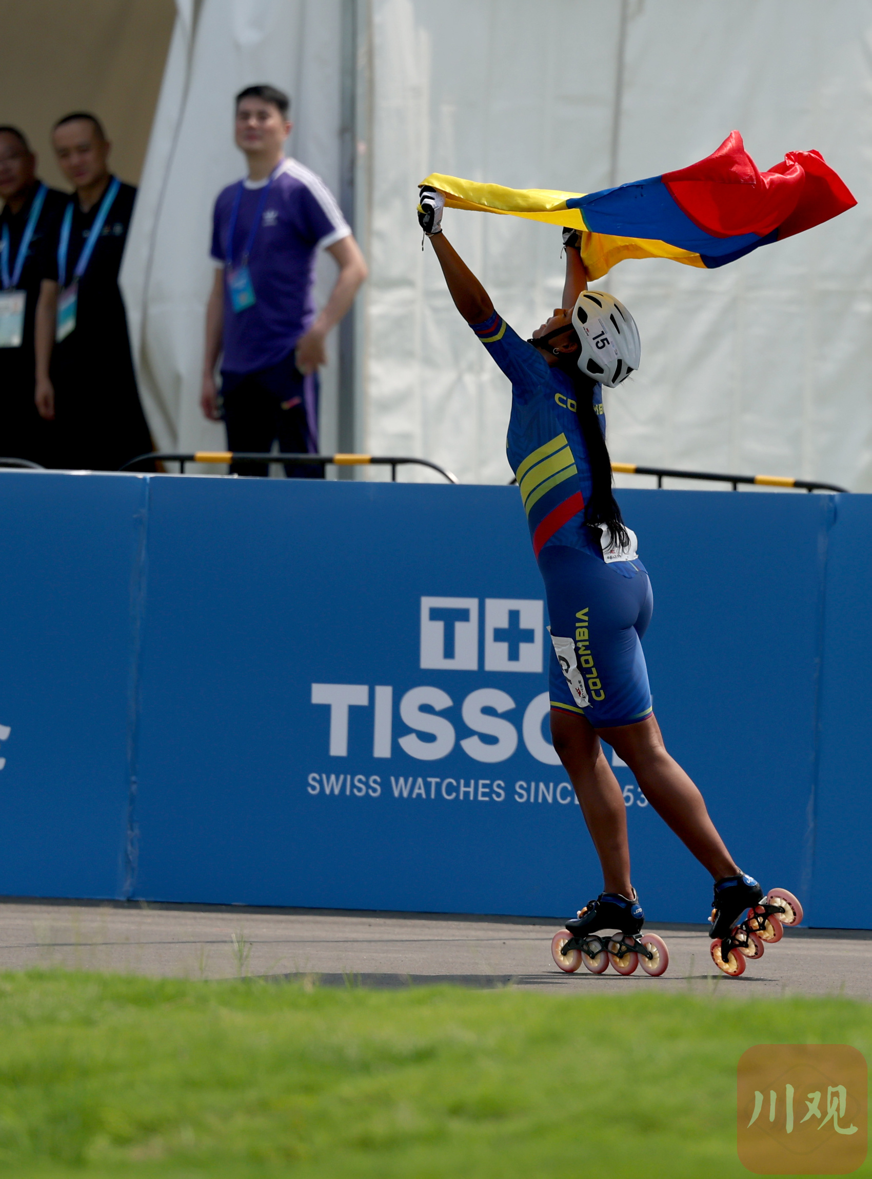 8月12日午间举行的成都世界运动会速度轮滑公路赛单圈争先赛决赛,金牌各归其主。女子组比赛中,哥伦比亚选手展现出强劲实力,成功摘得金牌。男子组西班牙选手力压群雄,登上冠军领奖台。