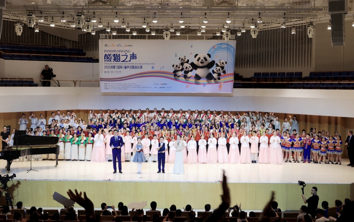 8月11日晚,在中国欧洲中心天府音乐厅,随着多国童声合唱团共同唱起《茉莉花》《成都》,“熊猫之声”2025成都(国际)童声合唱音乐周音乐盛典落下帷幕。这场汇聚全球童声力量的音乐盛宴,以歌声为桥,串联起多元文化的对话与共鸣,为成都这座“音乐之都”再添国际化亮色。