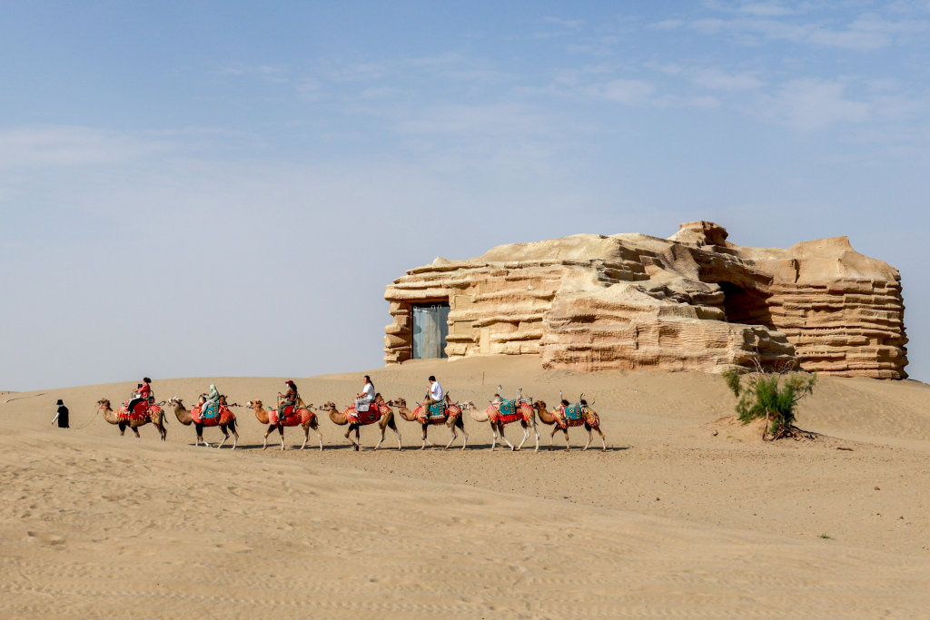“沙漠之门”景区位于新疆维吾尔自治区阿拉尔市,是浙江文旅援疆“双珠”计划的一部分。“沙漠之门”景区占地面积14万平方米,年均接待游客60万人次。昔日的“死亡之海”成为当地旅游新名片。