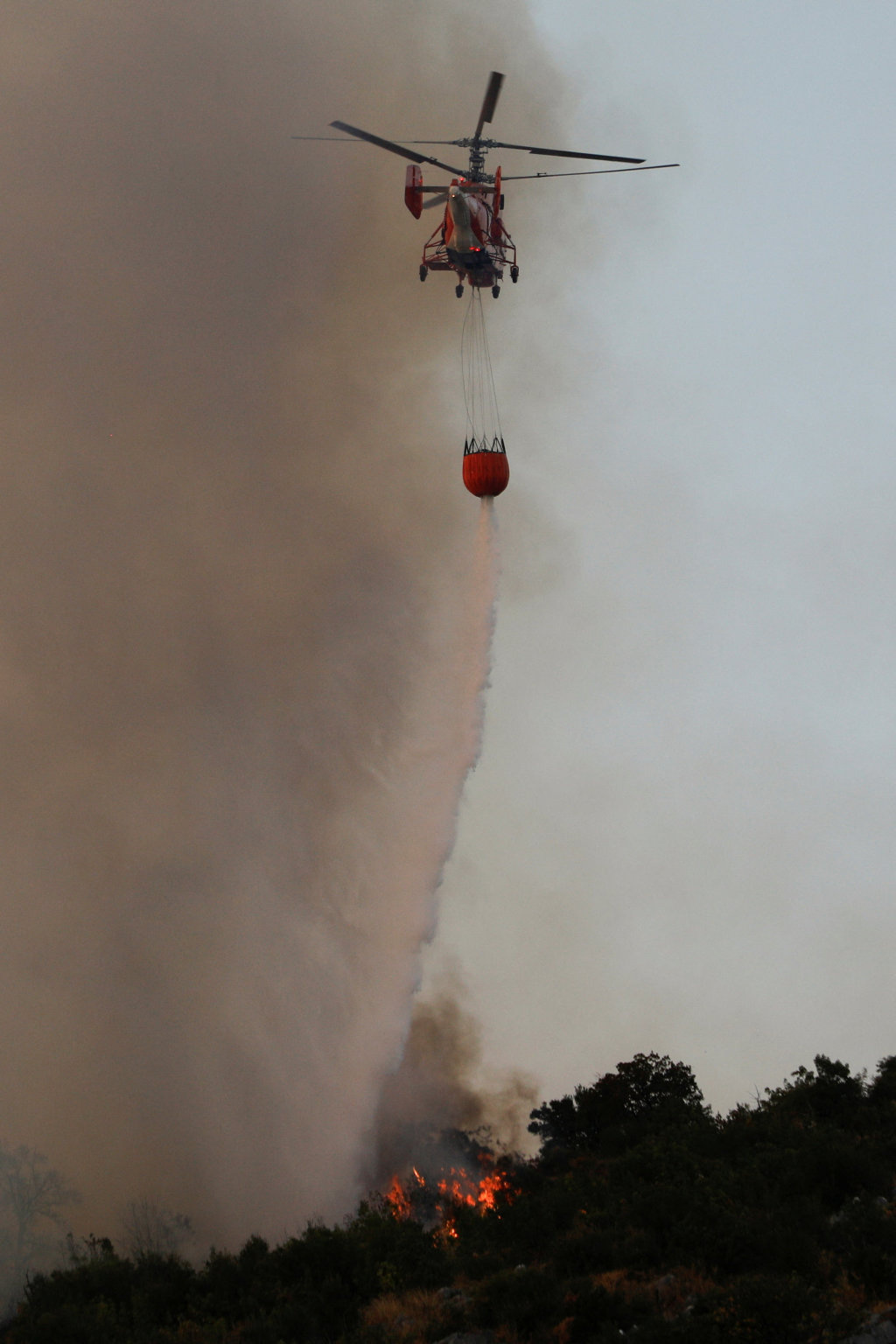 8月11日,消防直升机在黑山首都波德戈里察郊外控制野火。