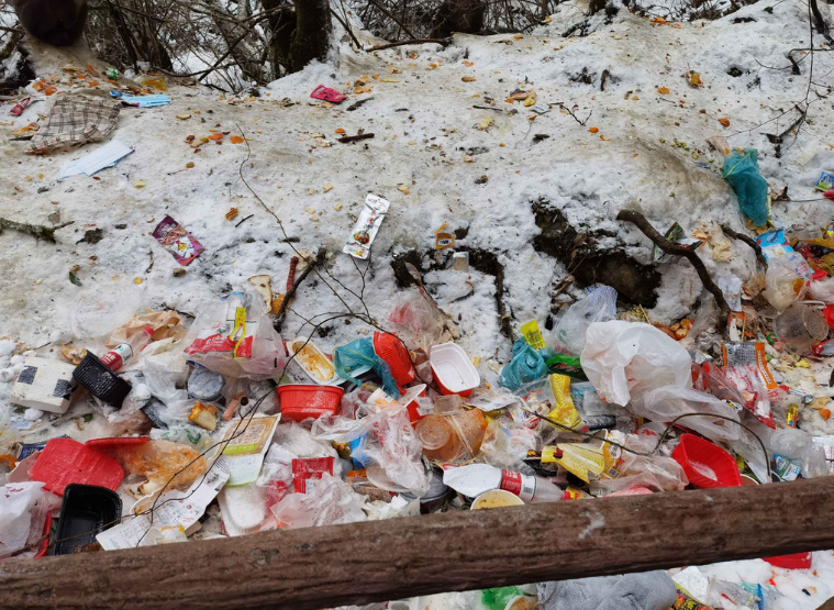 "当天我们上山的时候是上午十点,山上已经到处是垃圾,几乎每一级台阶都有!"回忆当日的九峰山旅游经历,成都游客曹女士称很不愉快:大约每隔二十分钟的路程有一个垃圾桶,但每个垃圾桶当天全部爆满,还有很多垃圾溢出来散落在周围,上山栈道内外都是成堆的垃圾,已经把美丽的雪景覆盖了。尽管所有垃圾桶都满满当当,也没有看到有保洁员清洁垃圾。有的游客带着垃圾袋,但更多的游客都是吃完随手就丢。"
