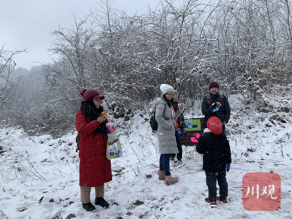 德阳游客李先生告诉记者,带孩子来这里玩雪,到了后发现山路打滑严重,山中也没有安全员维护,需要时时刻刻盯紧自己的小孩,"上山就有点后悔了,带着娃娃很害怕,担心脚一滑就滚下山去。"1月9日,记者上山时也是小心翼翼,尽管周末上下山游客不少,但缺少道路实时监控、正规劝导员和安全员,若有独行的游客不小心打滑掉进道路之外的山林,应该很难被发现。