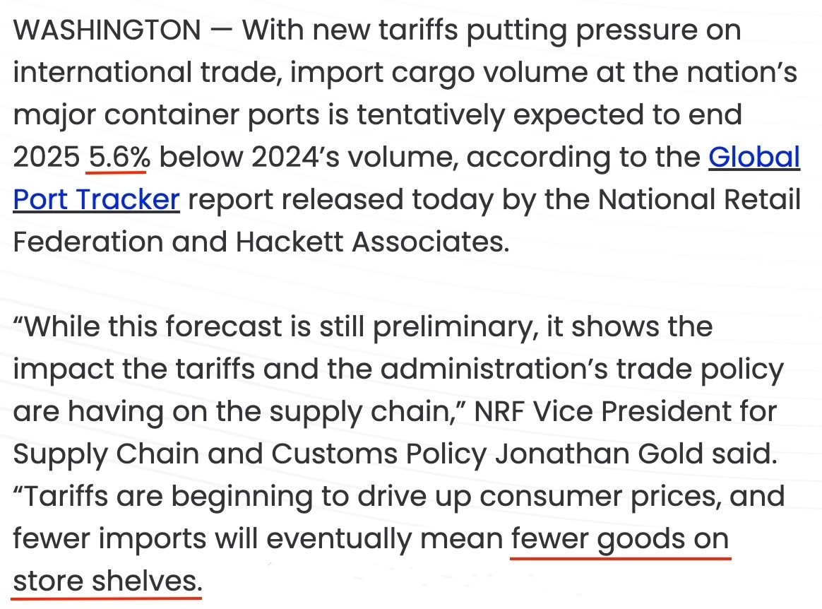 NRF副总裁戈尔德警告称,受关税影响,未来美国市场上的商品种类将进一步减少。