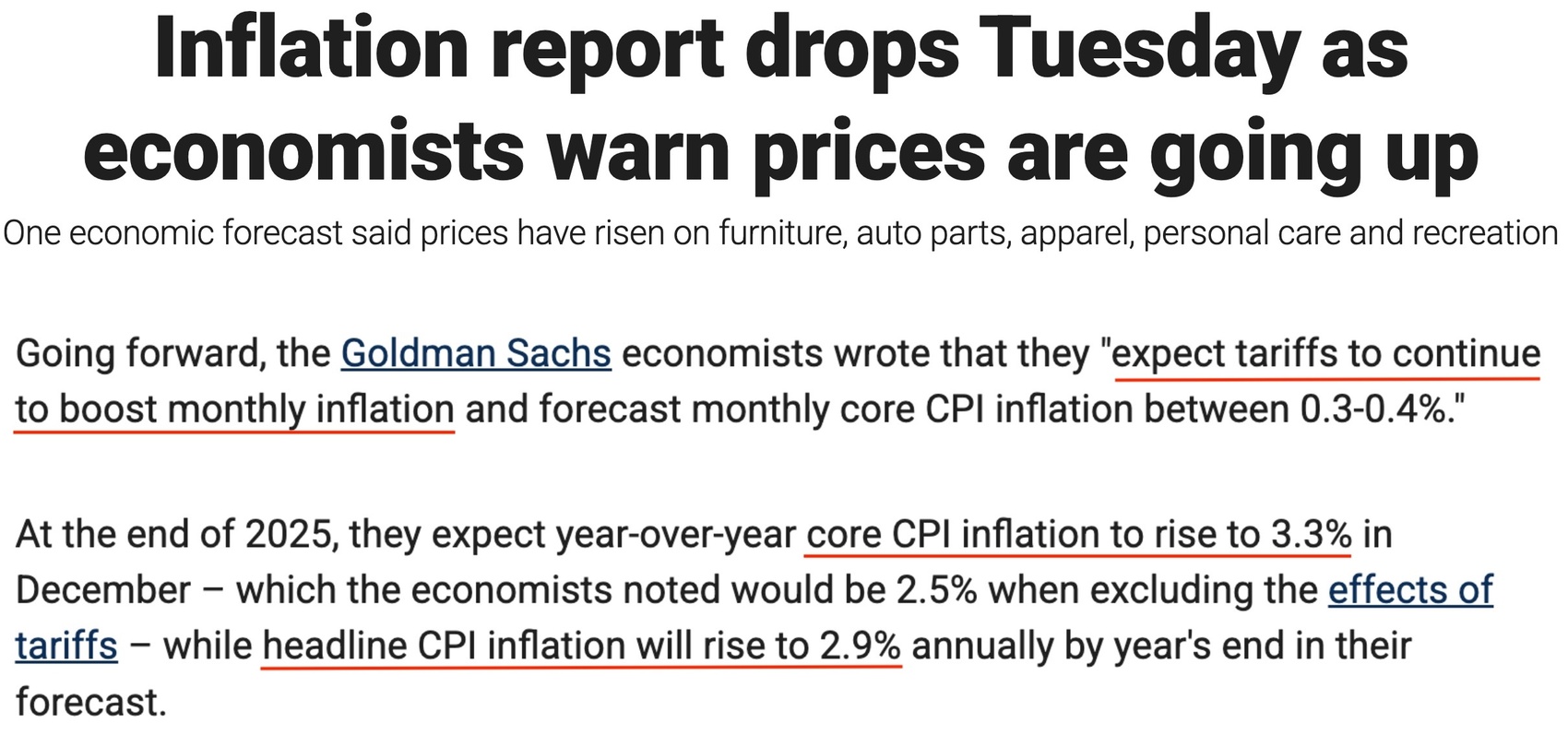 展望未来,高盛的经济学家们预计,关税将继续推高月度通胀水平;到年底,美国整体CPI和核心CPI的同比涨幅将分别升至2.9%和3.3%。