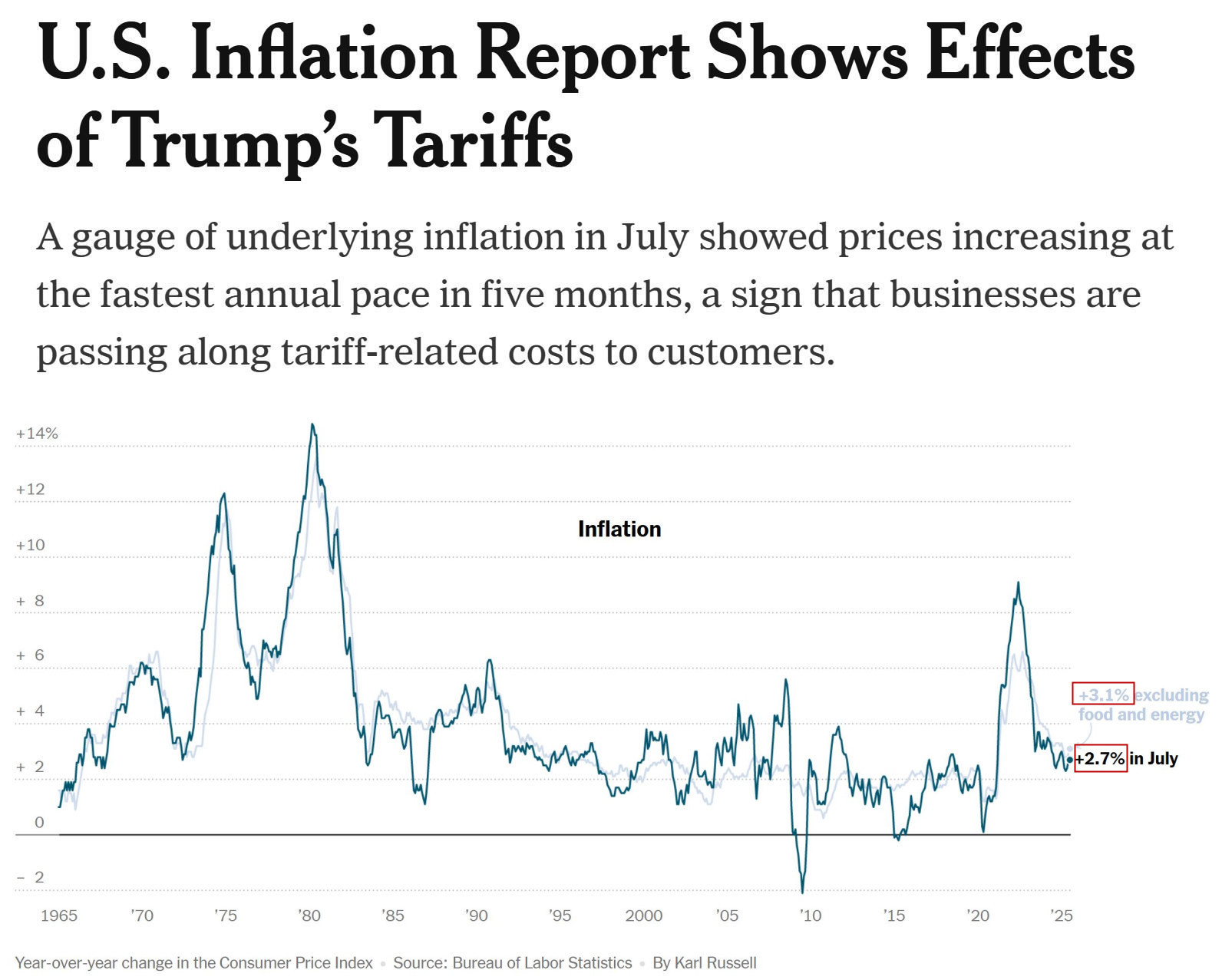 在很多媒体和专家看来,自4月起连续反弹的通胀数据表明,美国政府的关税政策对物价的拉升效应正在越来越全面地显现出来。