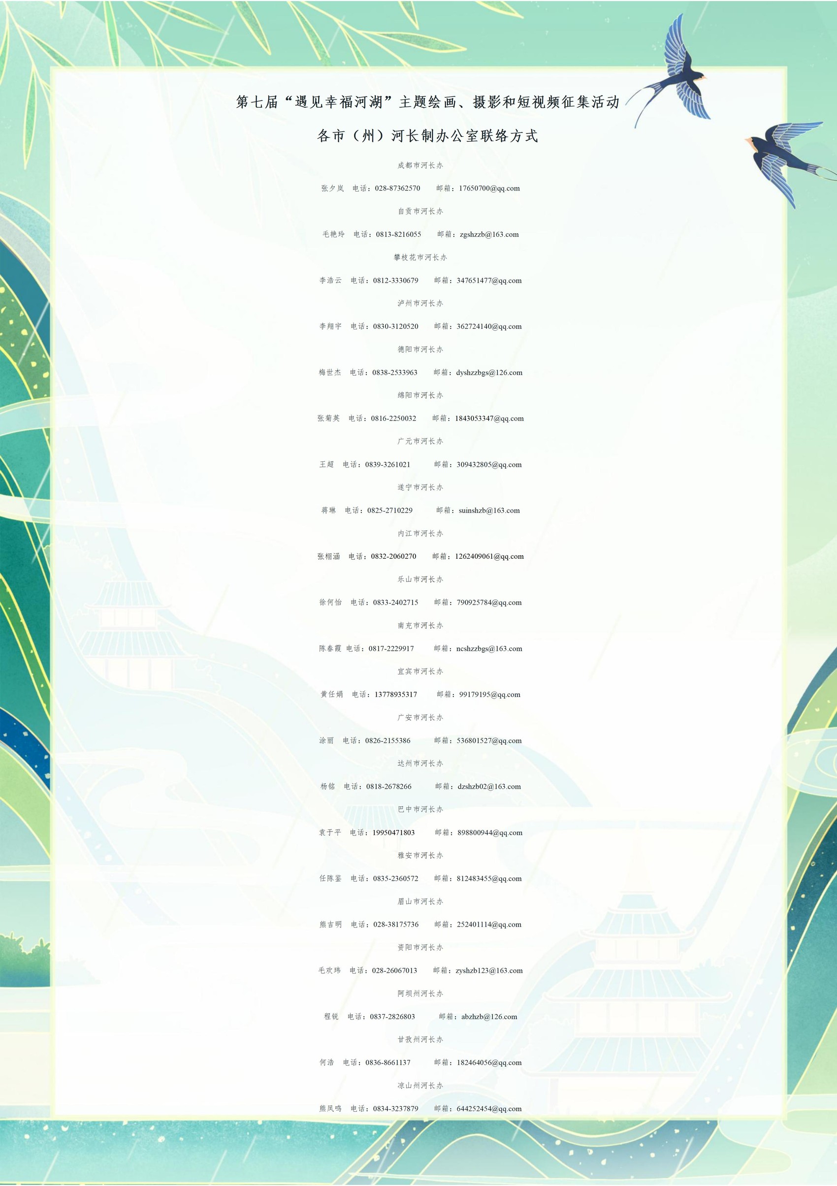 活动在各市州河长办的联络方式