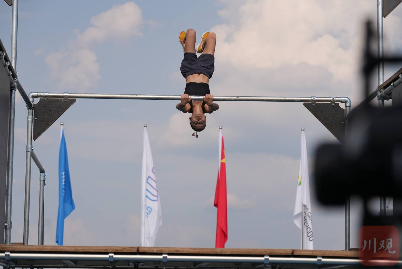 8月13日,成都烈日高悬。世运会跑酷女子自由式比赛在兴隆湖湖滨赛场进行,现场观众座无虚席,热情的欢呼声与赛场内的动感音乐交织,为这场“移动的艺术”盛宴增添了热烈氛围。