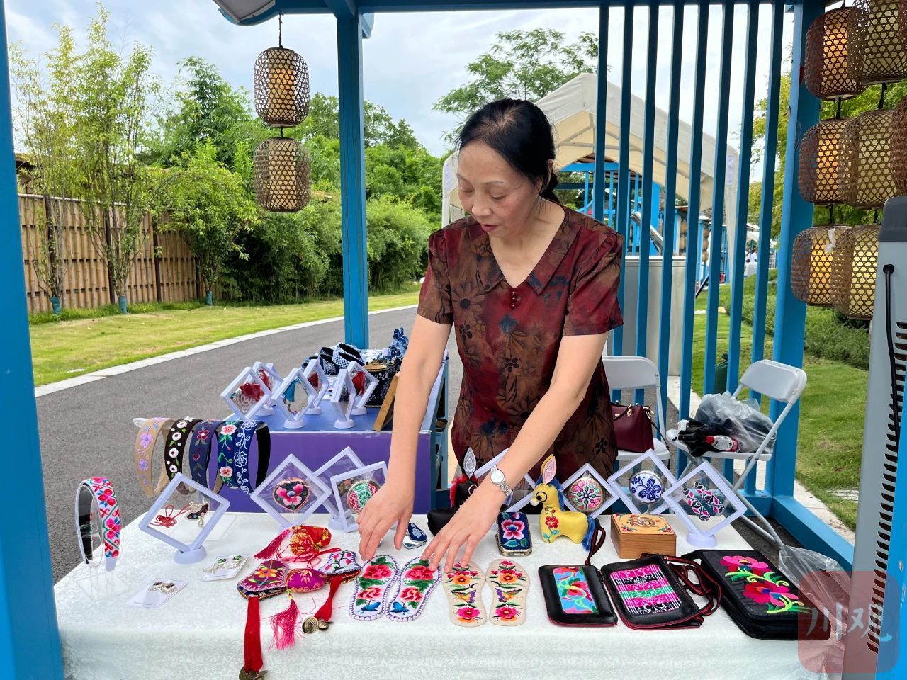 赛场外,宜宾元素同样亮眼。世运会期间,四川省非物质文化遗产——筠连苗族刺绣在成都世界园艺博览园精彩亮相。展示活动上,压发圈、香包、项链书签、鞋垫、钥匙扣等苗绣文创产品错落陈列,吸引不少游客驻足。“这些作品既有老手艺的魂,又有新潮流的范儿,太好看了!”一位游客拿起绣着花卉图案的钥匙扣,连连称赞。