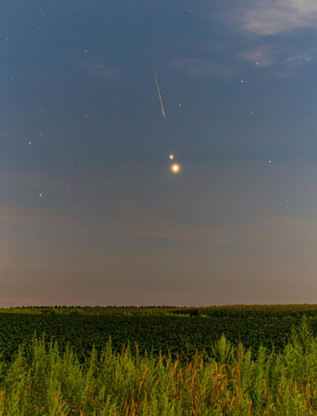 8月13日凌晨在黑龙江省佳木斯市汤原县拍摄的英仙座流星雨。