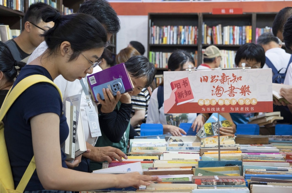8月13日,读者在2025上海书展现场翻阅书籍。
