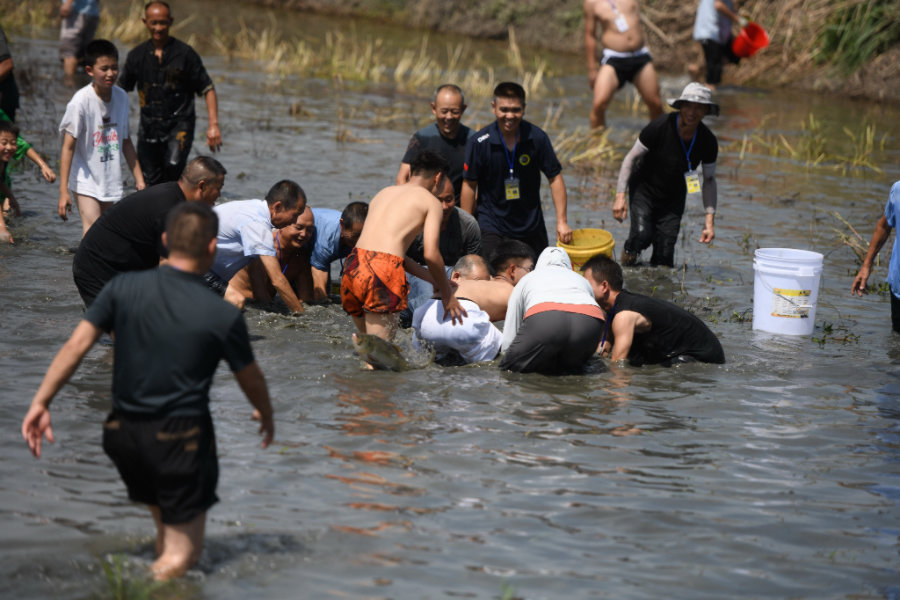 桂花桥镇党委书记袁新介绍,本届活动创新"赛事+消费"模式,以球为媒、以食会友,推动全镇美食消费。开幕式后,该镇还举办了金色稻田观摩传统收割赛事和浑水摸鱼赛事。“这都是老百姓喜爱的传统赛事。”袁新表示。