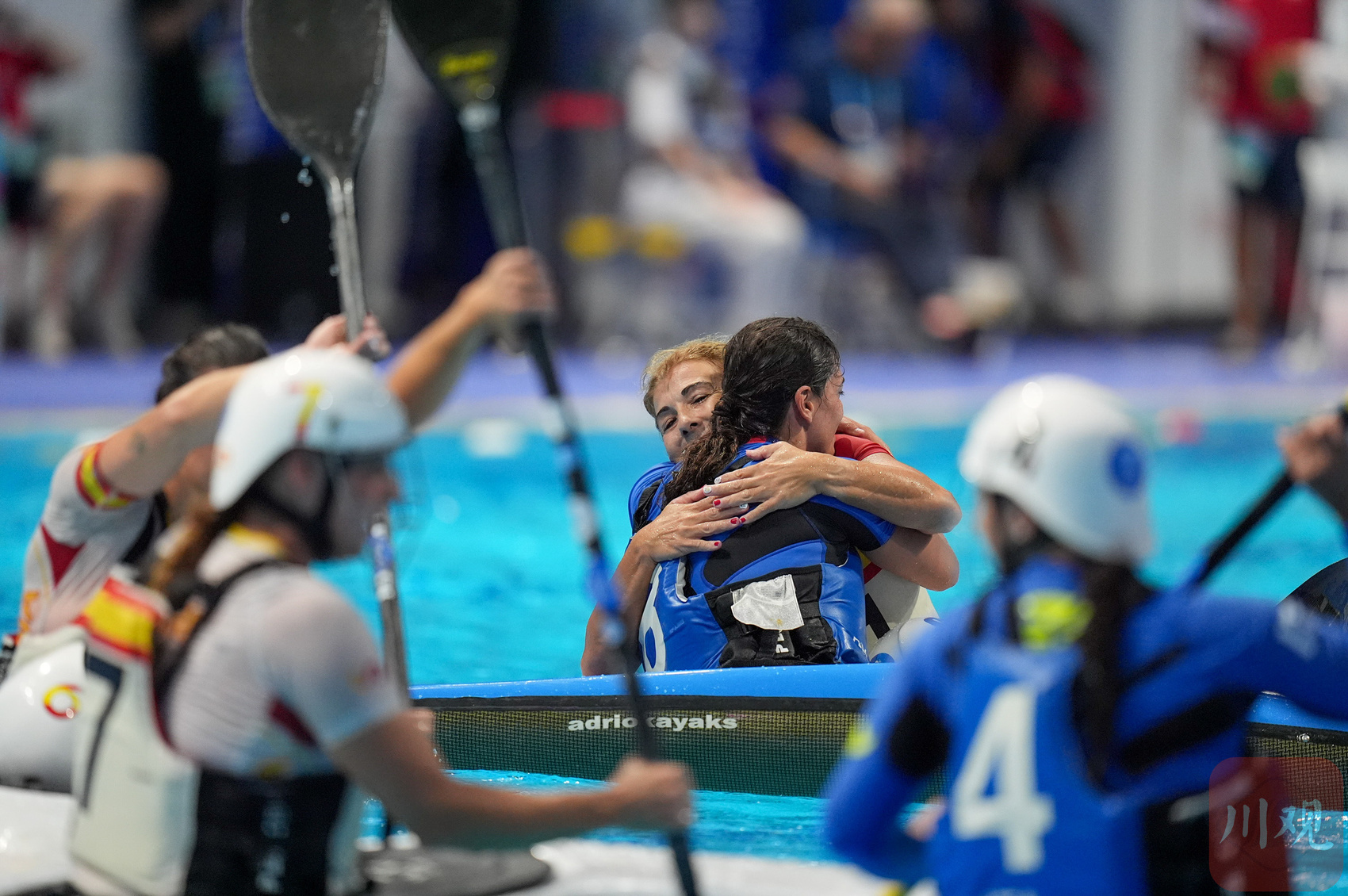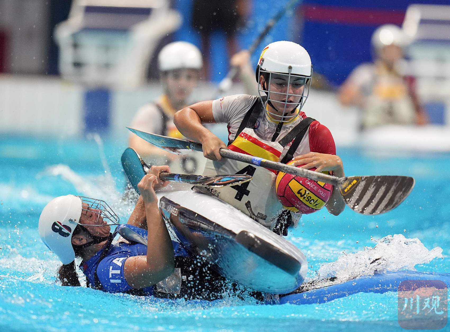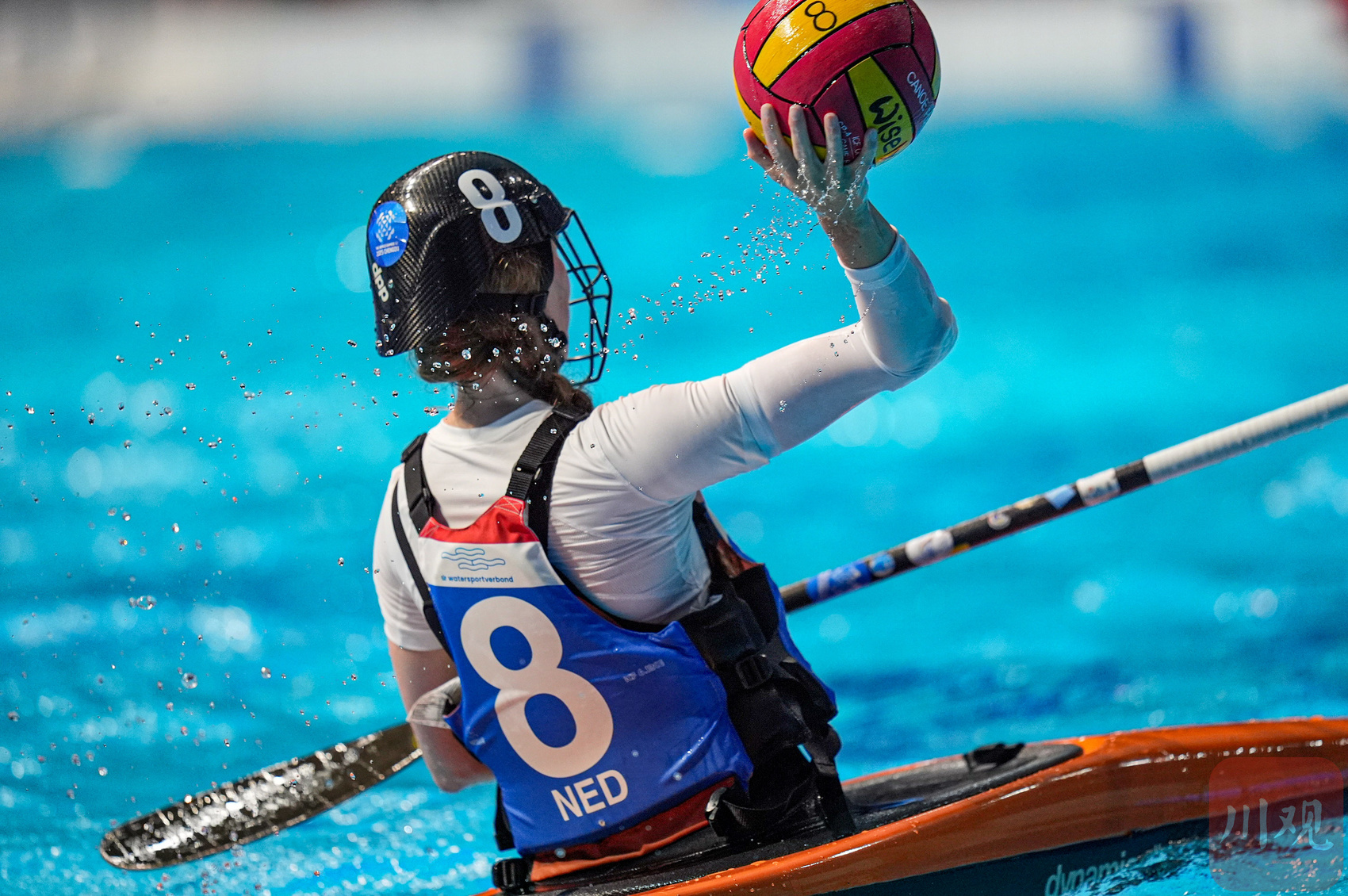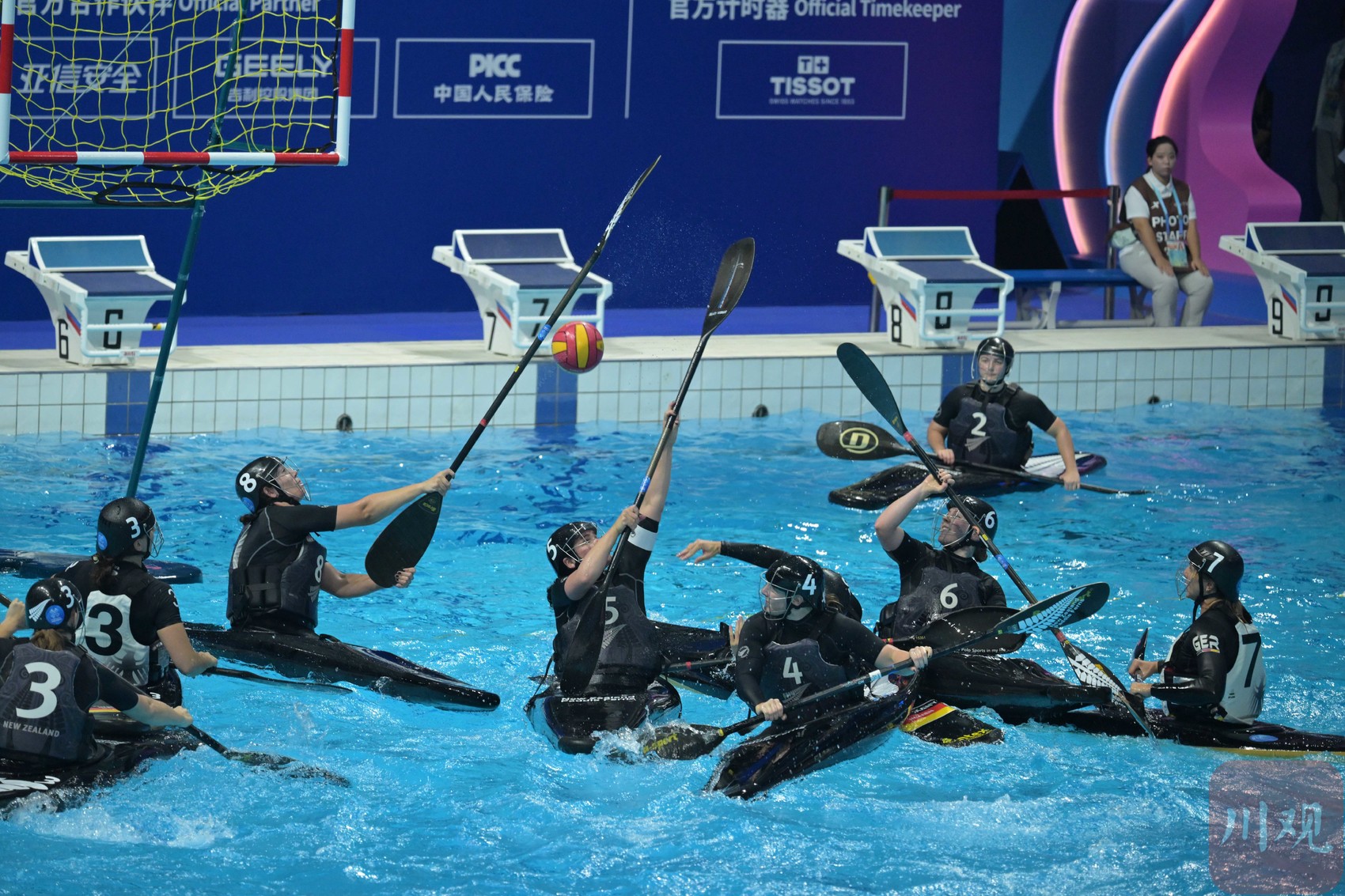 8月13日,简阳文体中心游泳馆,成都世运会皮艇球开赛。来自上海的17岁小姑娘巢语佳为中国队打入世运会皮艇球历史的首枚进球,但遗憾是中国女队1-15负于伊朗队。