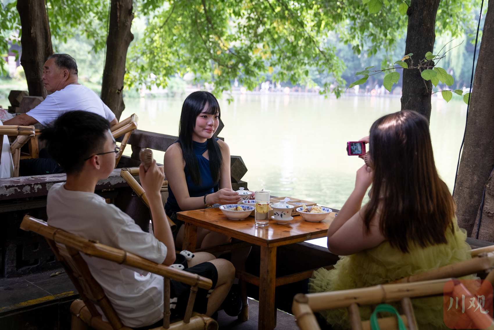 通过多元消费场景的打造,鹤鸣茶社成功吸引了更广泛的客群:越来越多的年轻人也愿意约上三五好友在此休憩,还有不少来成都旅游的游客专程到此一游。“针对年轻人的生活方式,我们还推出了夜茶服务。”祝元清说,到晚上十点公园关灯后,茶社也还会为在这儿的游客亮一盏灯,让大家在此休憩聊天。