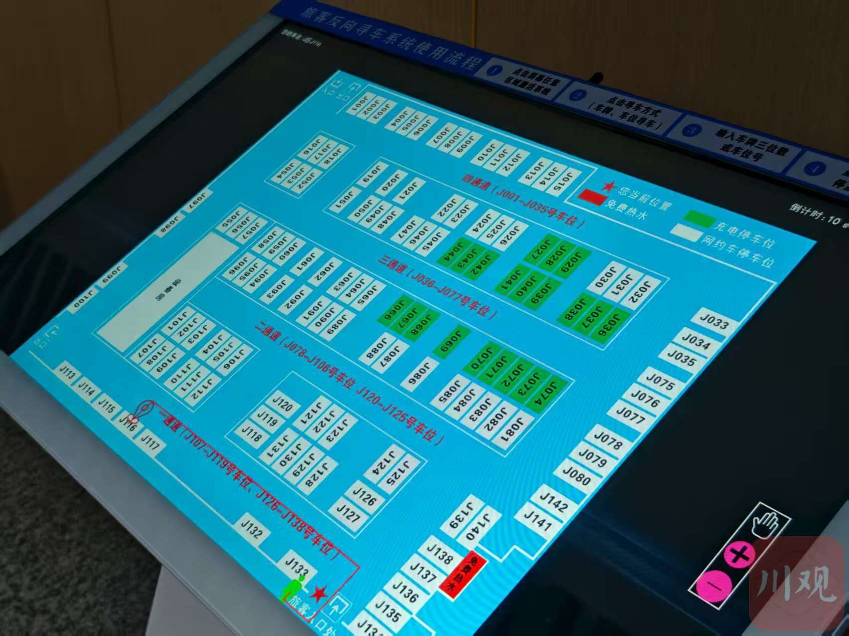不仅如此,现场还配有旅客反向寻车系统。网约车进场停入车位后,乘客只需正确填写3位车牌号,系统就会查询到车辆所在位置,并指示路线。