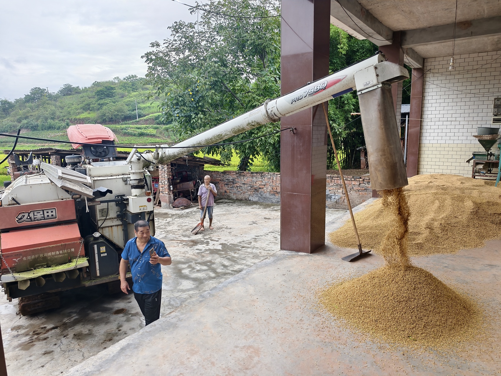 “卸货了!” 机手一声吆喝,收割机缓缓驶离稻田,开进丁朝森的晒坝,随后伸出一根约 6 米长的管子,将 “肚子” 里的谷粒源源不断地 “吐” 出来 —— 不见一根谷草、一片杂叶,干净得像经过精心筛选。眼前的每一颗谷粒,都诉说着从春到秋的耕耘与期盼。