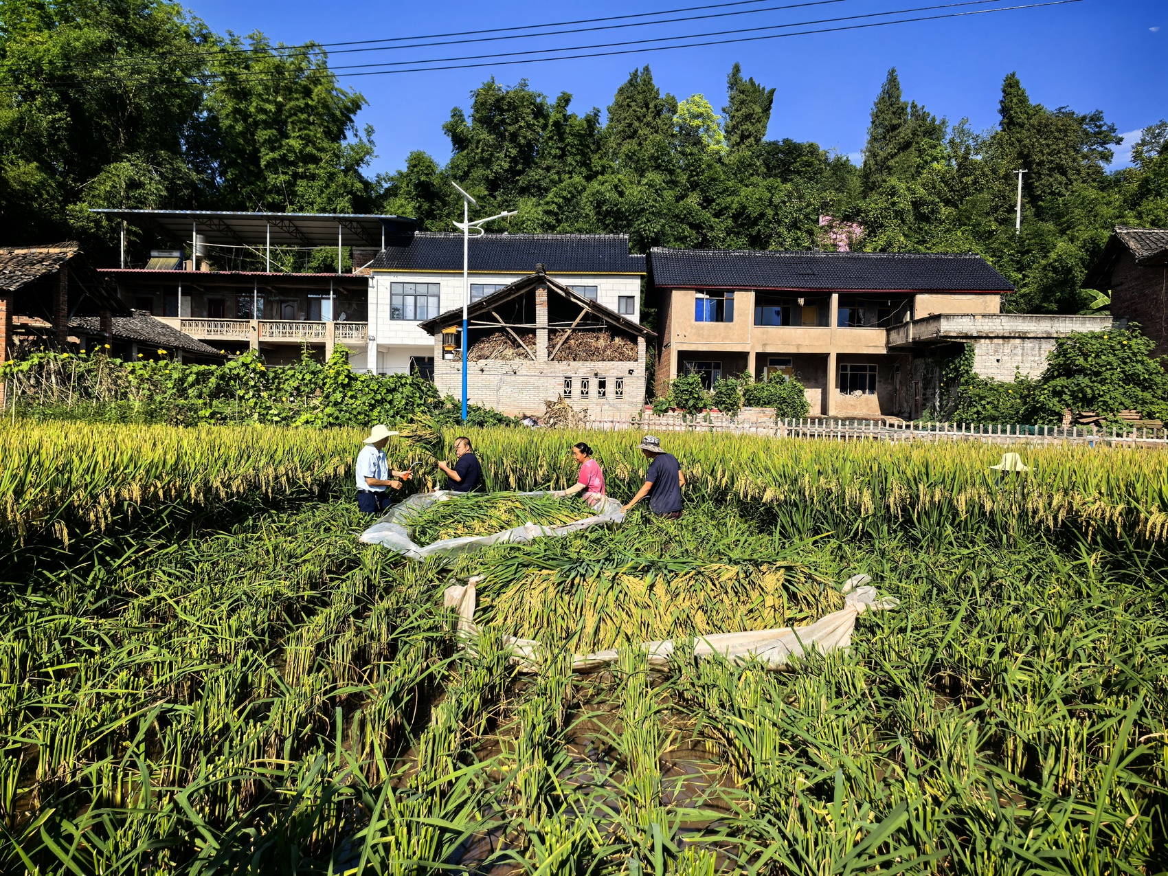 “稻花香里说丰年,听取蛙声一片。”8 月 12 日,立秋刚过 5 天,秋阳洒下阵阵暖意,荣县 37.8 万亩稻田已披上 “金衣”。走进田间地头,就能感受到水稻收割的热闹与欢腾。