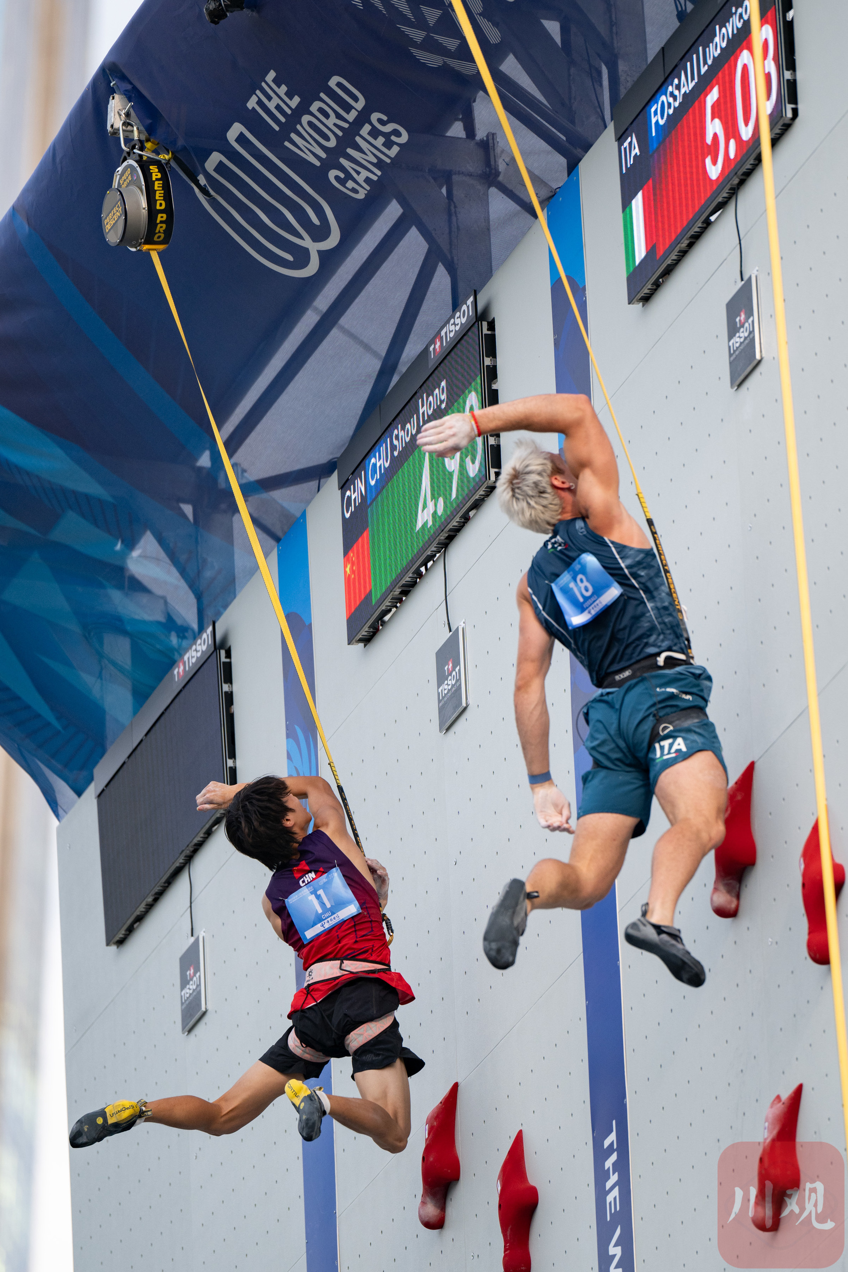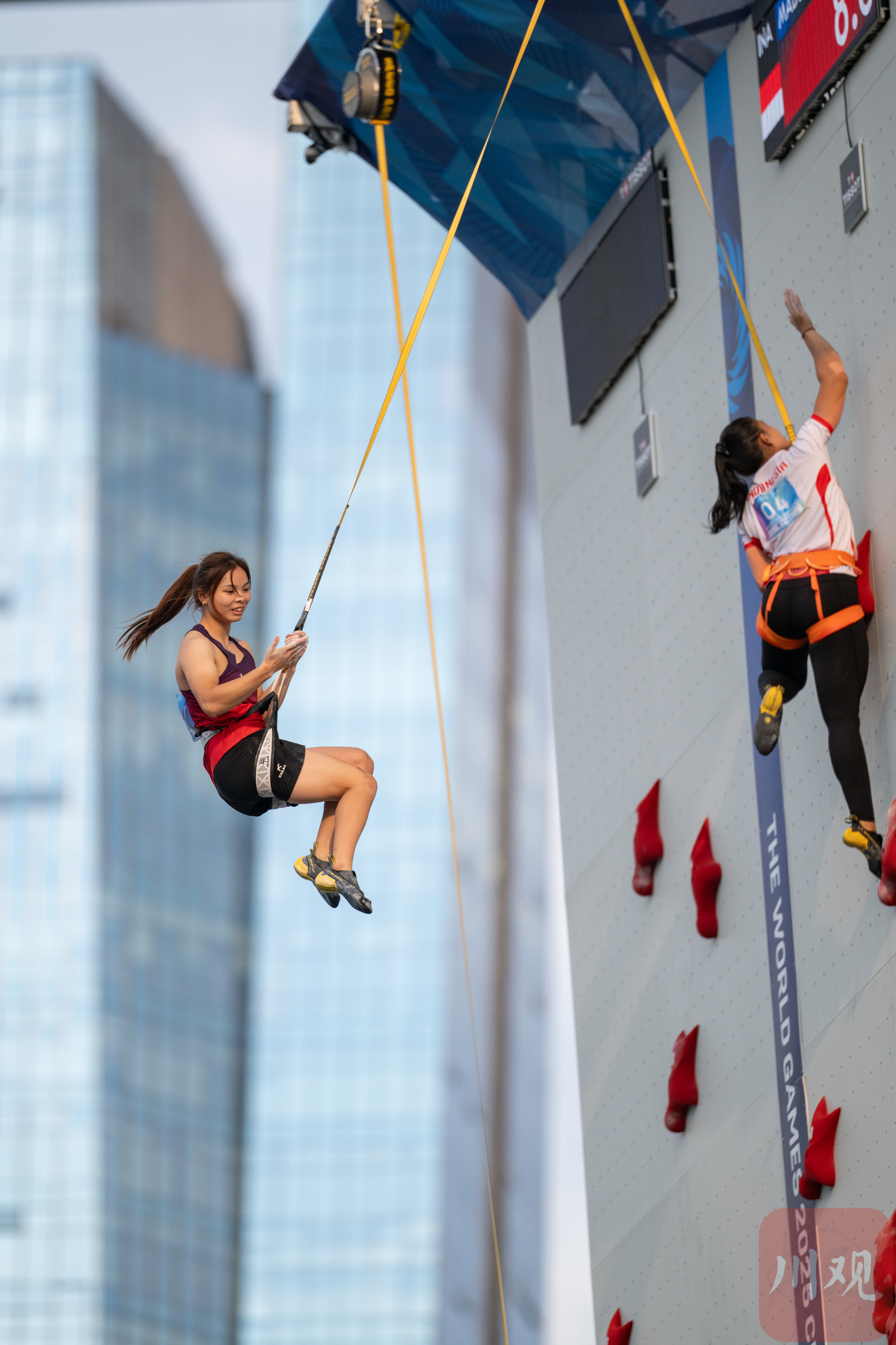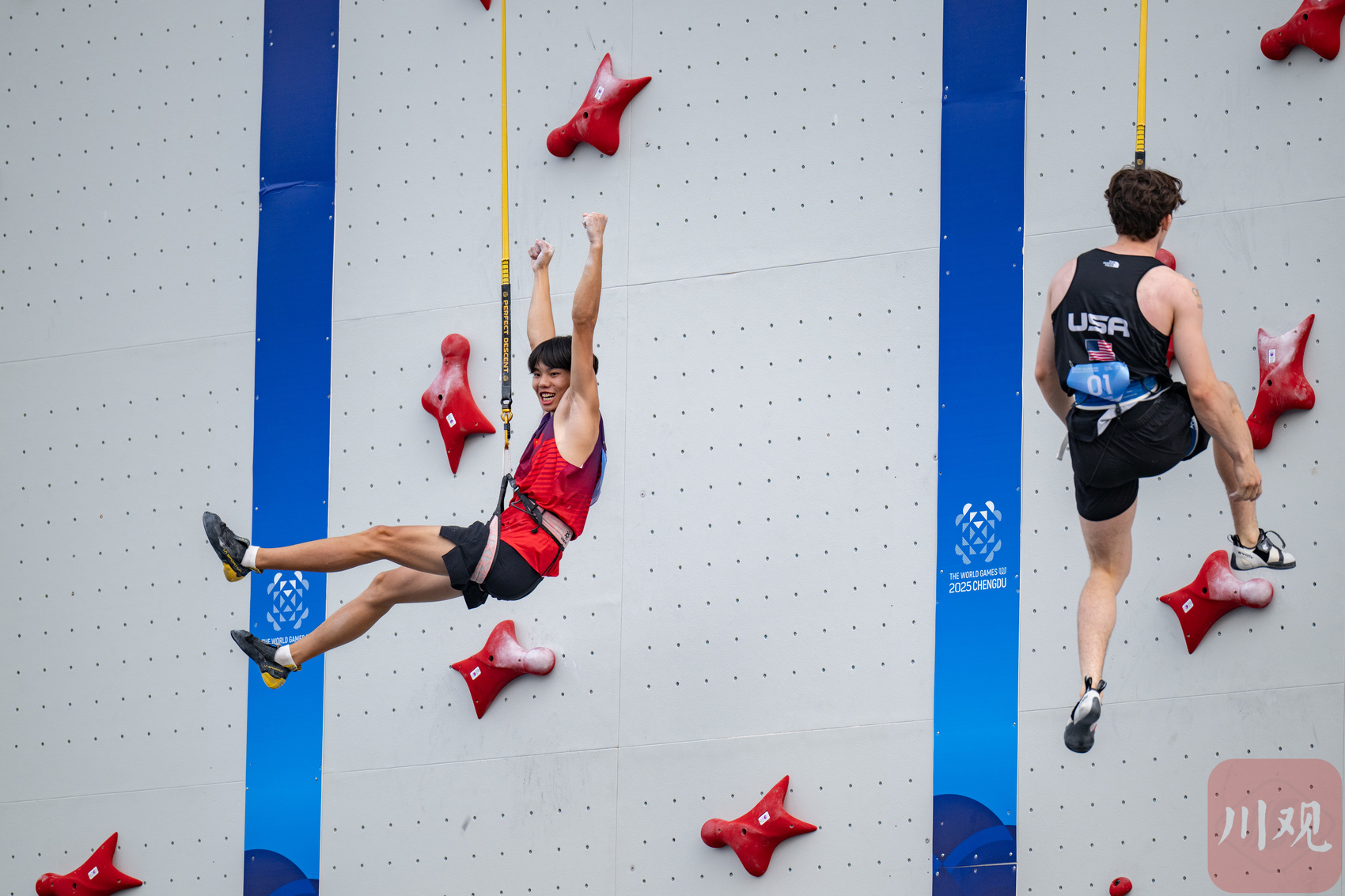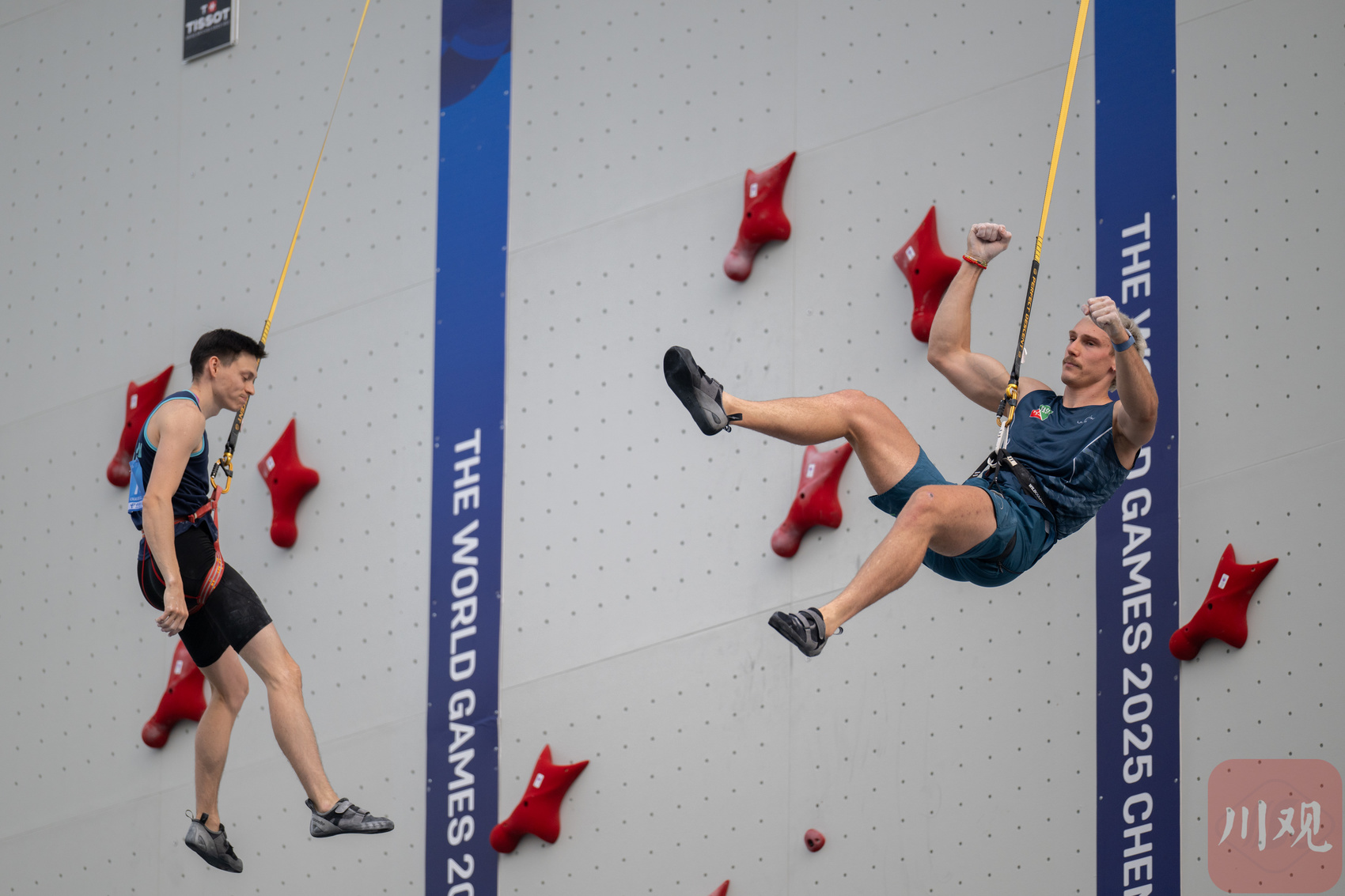 8月14日,2025年成都世运会攀岩男、女子速度个人赛在成都市天府公园举行。中国选手邓丽娟、覃于妹、周娅菲分别获得女子组金、银、铜牌。中国选手储守宏、龙见国分别获得男子组金、铜牌,美国选手WATSON Samuel Ryan获得该组别银牌。