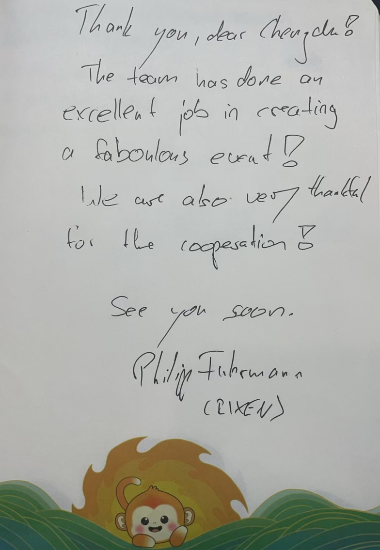 索道滑水裁判长西蒙和索道滑水裁判邓佩珊写下的感谢信。