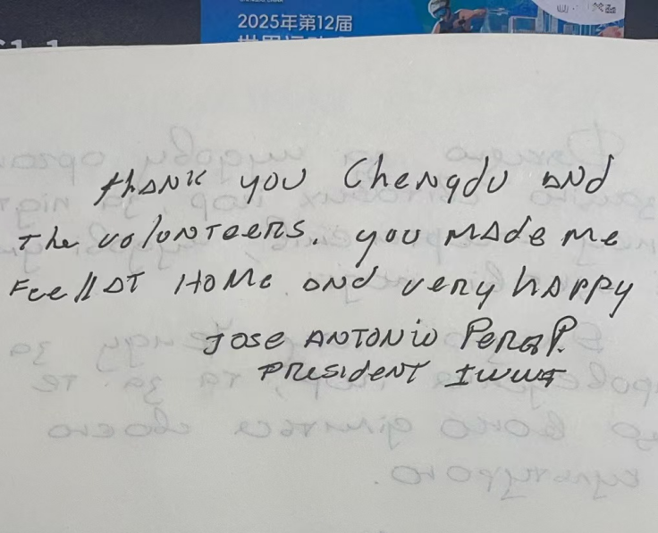 几天前,成都世运会滑水项目收官,三岔湖水上项目场馆中心收到了许多这样的“礼物”:多位国际体育组织负责人及运动员,用手中纸笔写下一封封感谢信,对赛区运行、赛事保障以及工作人员的付出点赞。