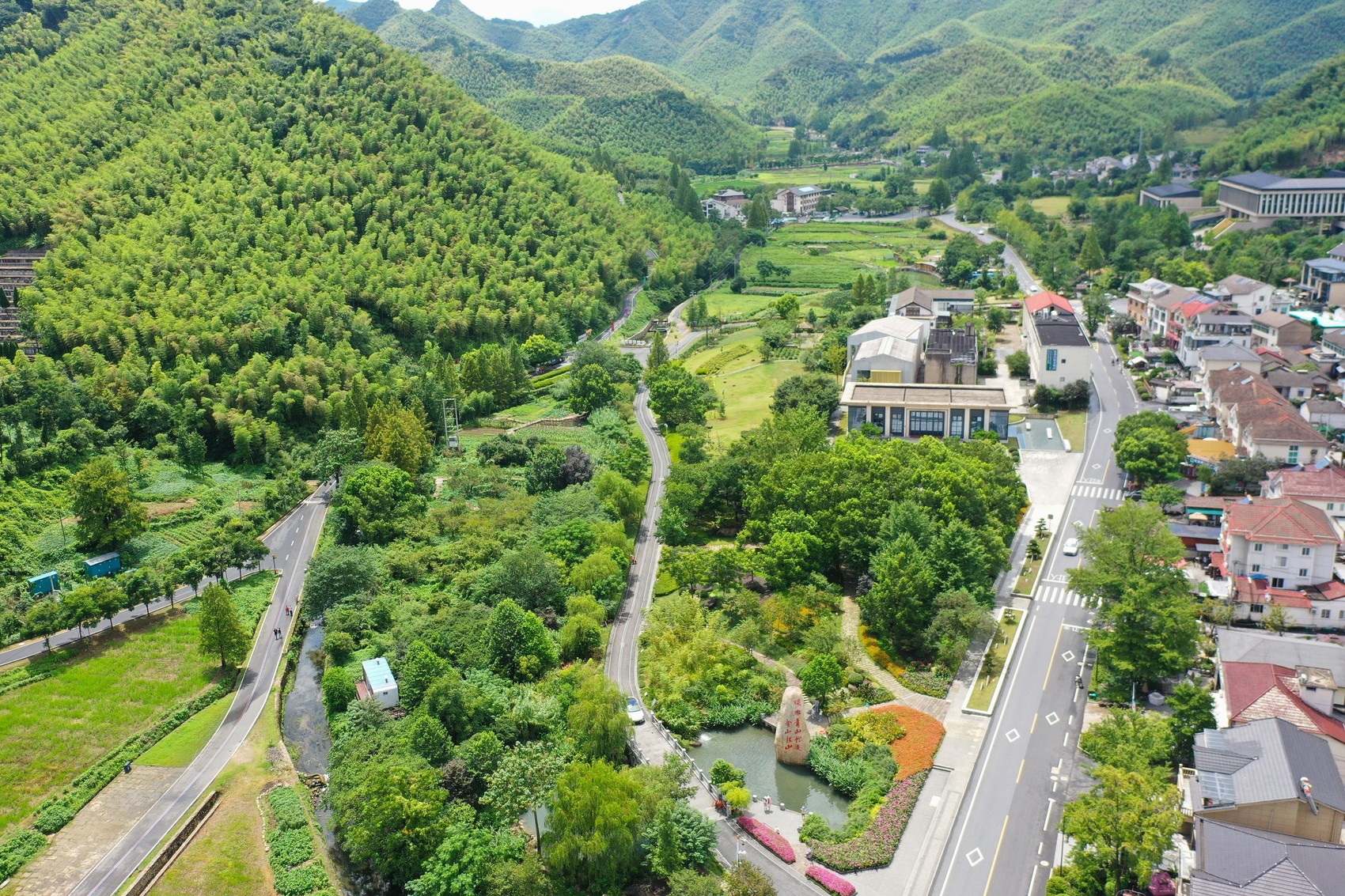 石碑一侧,那条曾经“驮着”矿山经济的村主干道,已然从崎岖山路变成连绵绿道。从余村出发,串联起周边村庄的余村大道全线贯通。这条满载生机的康庄大道,将延伸至更远的远方。