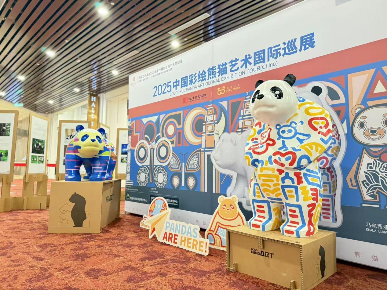 8月17日,“中国彩绘熊猫艺术国际巡展”在马来西亚吉隆坡举行,该展览由国家艺术基金、四川省文化馆联合主办,中国大熊猫保护研究中心学术指导。据主办方介绍,本次展览是中国大熊猫文化首次以系统化、沉浸式形式在马来西亚亮相,展览将持续至8月19日,向公众免费开放,以艺术、生态、科技和互动体验,共同勾勒出一个立体鲜活的“川味”熊猫世界。