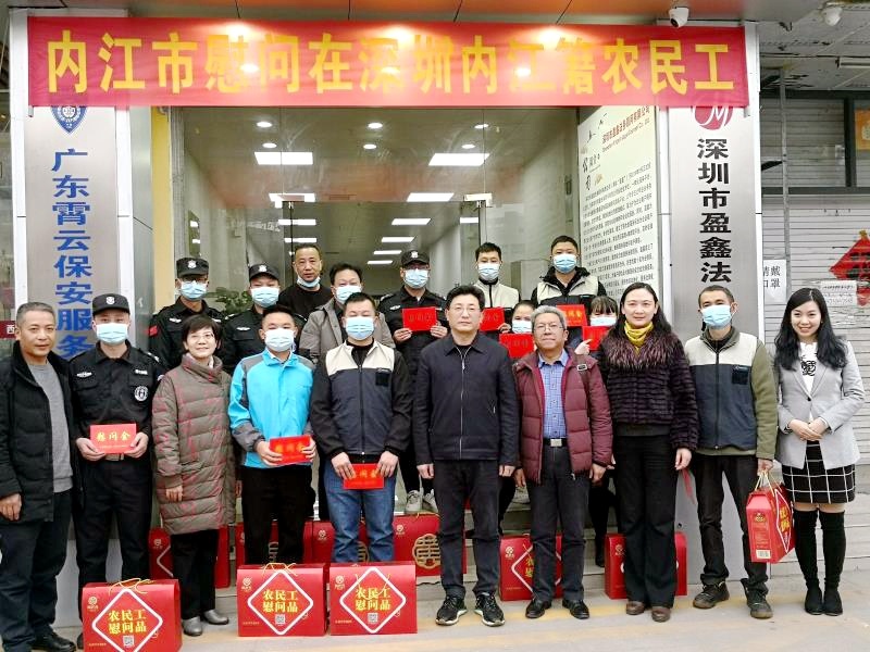 据悉,为切实做好疫情防控常态化背景下农民工服务保障工作,在元旦春节期间,内江市委、市政府领导率队,分别前往福建省厦门市、广东省深圳市和东莞市、云南省昆明市、江苏省苏州市、广西壮族自治区南宁市等地,走访慰问在外务工的内江籍农民工,把党委、政府的关爱和新春祝福送到他们的身边。