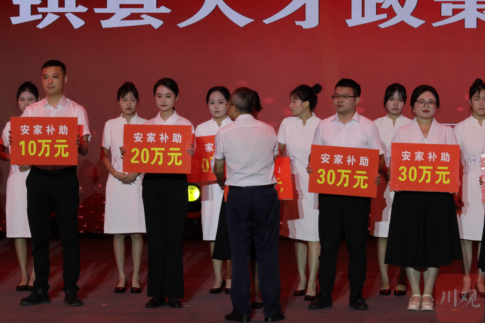 趁热打铁,活动现场举行了人才兑现仪式,12名引进人才现场获得政策“大礼包”。洛亥镇党委委员、组宣委员喻福熠介绍,这是他到珙县工作的第7个年头,今年一次性获得了1万元生育补助和3万元学历提升奖励。“这让我深深地感受到组织的温暖与关怀,珙县的人才政策让我们安身、安心、安业。未来,我将继续在岗位上发光发热,为家乡发展贡献力量。”