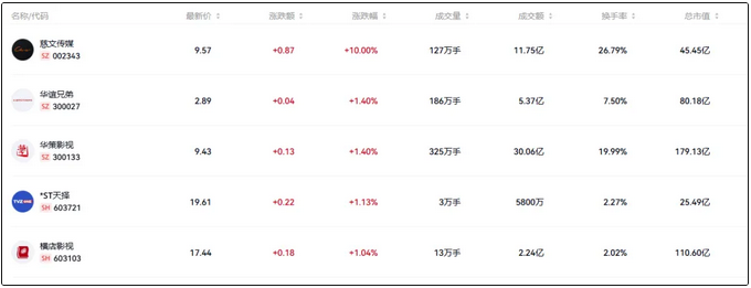 影视板块跟风走高