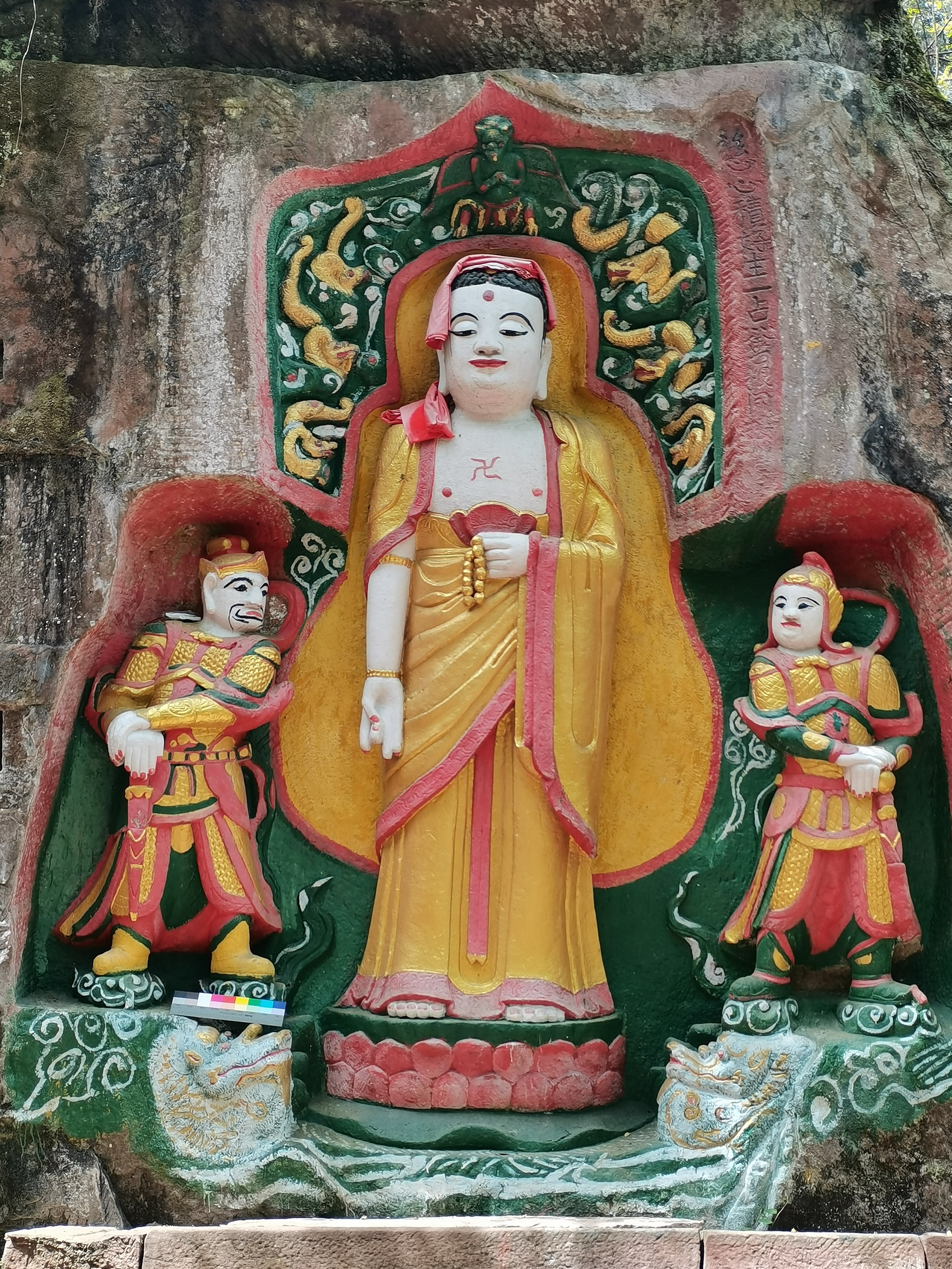 安岳封门寺“拈花微笑”摩崖造像,因体量巨大、造型精美,在2018年传出“妆彩重塑”前后对比图后曾引发舆情。摸清全省石窟不当妆彩的专项调查,正是在此背景下展开。