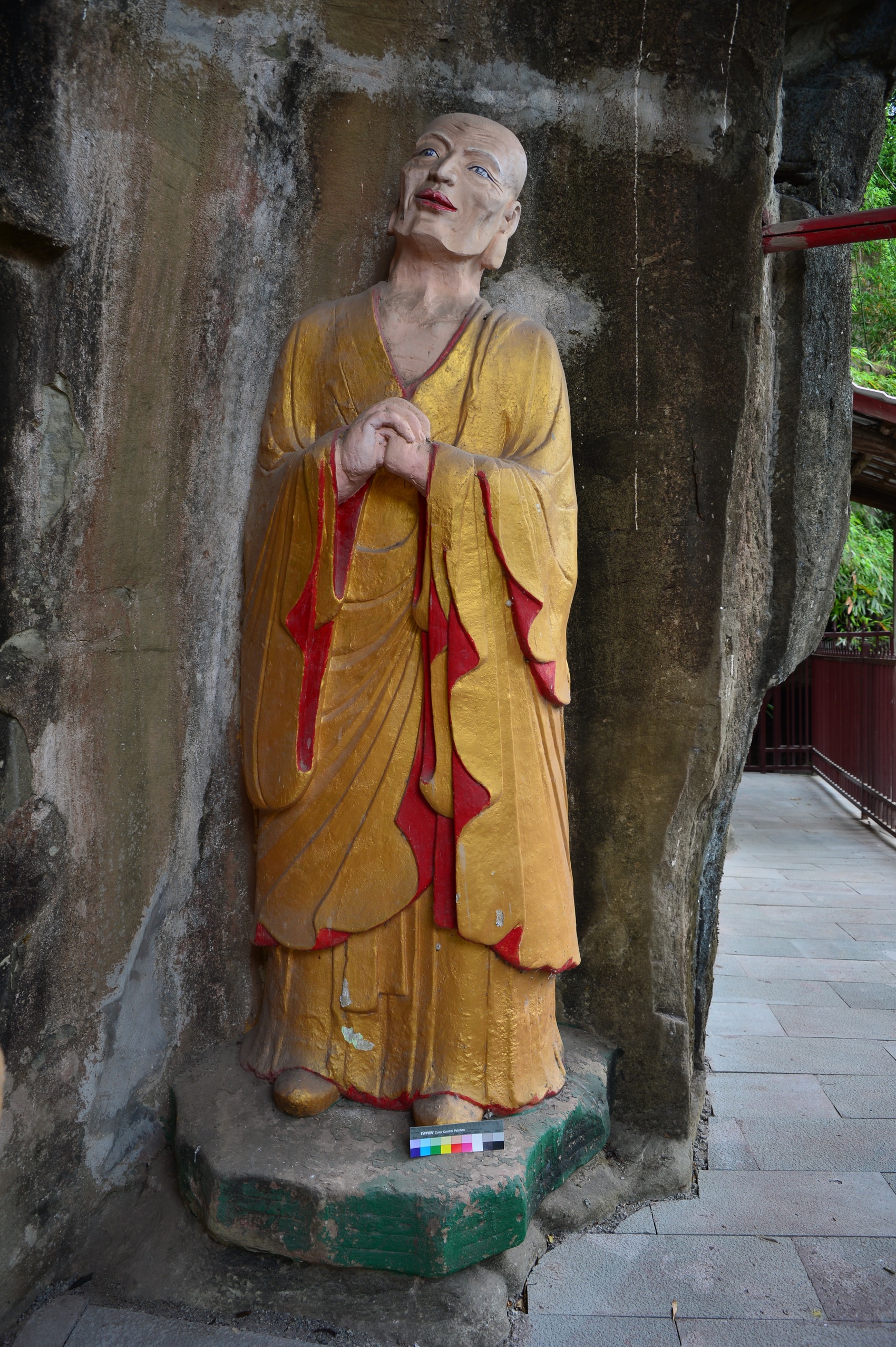 资中东岩“拈花微笑”摩崖造像伽叶被清理前
