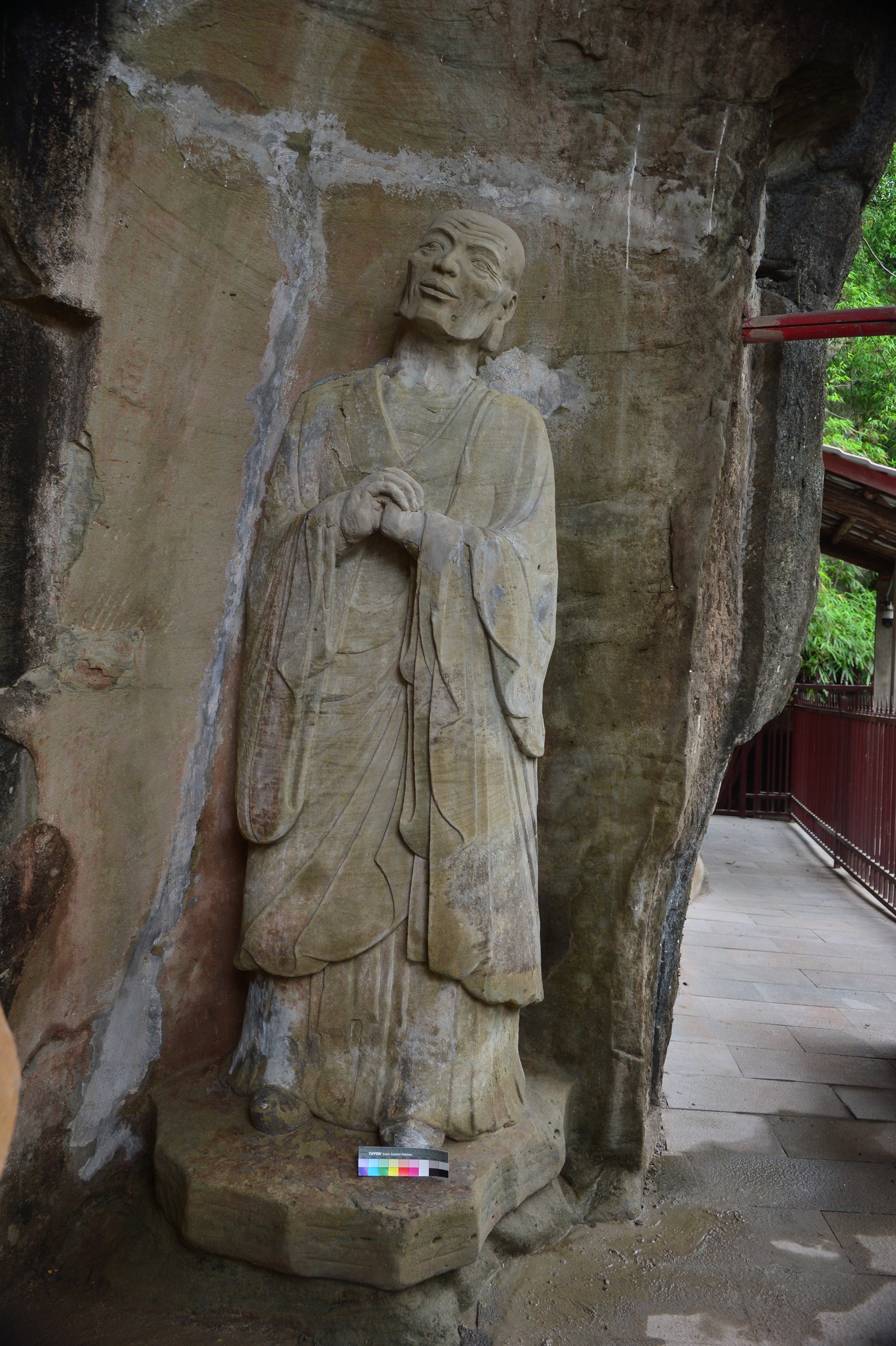 资中东岩“拈花微笑”摩崖造像伽叶被清理后